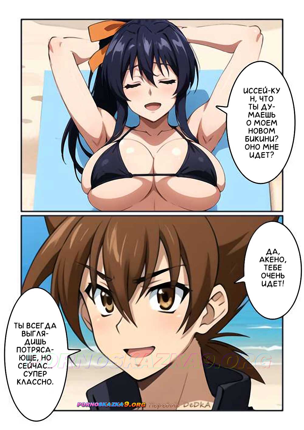 Секс комикс Пляжная красотка Акено. Красотка Акено любила подразнить Иссей-куна, он уже привык к этому и не обижался, но однажды Акено приготовила для него приятный сюрприз…