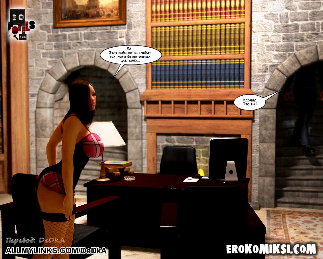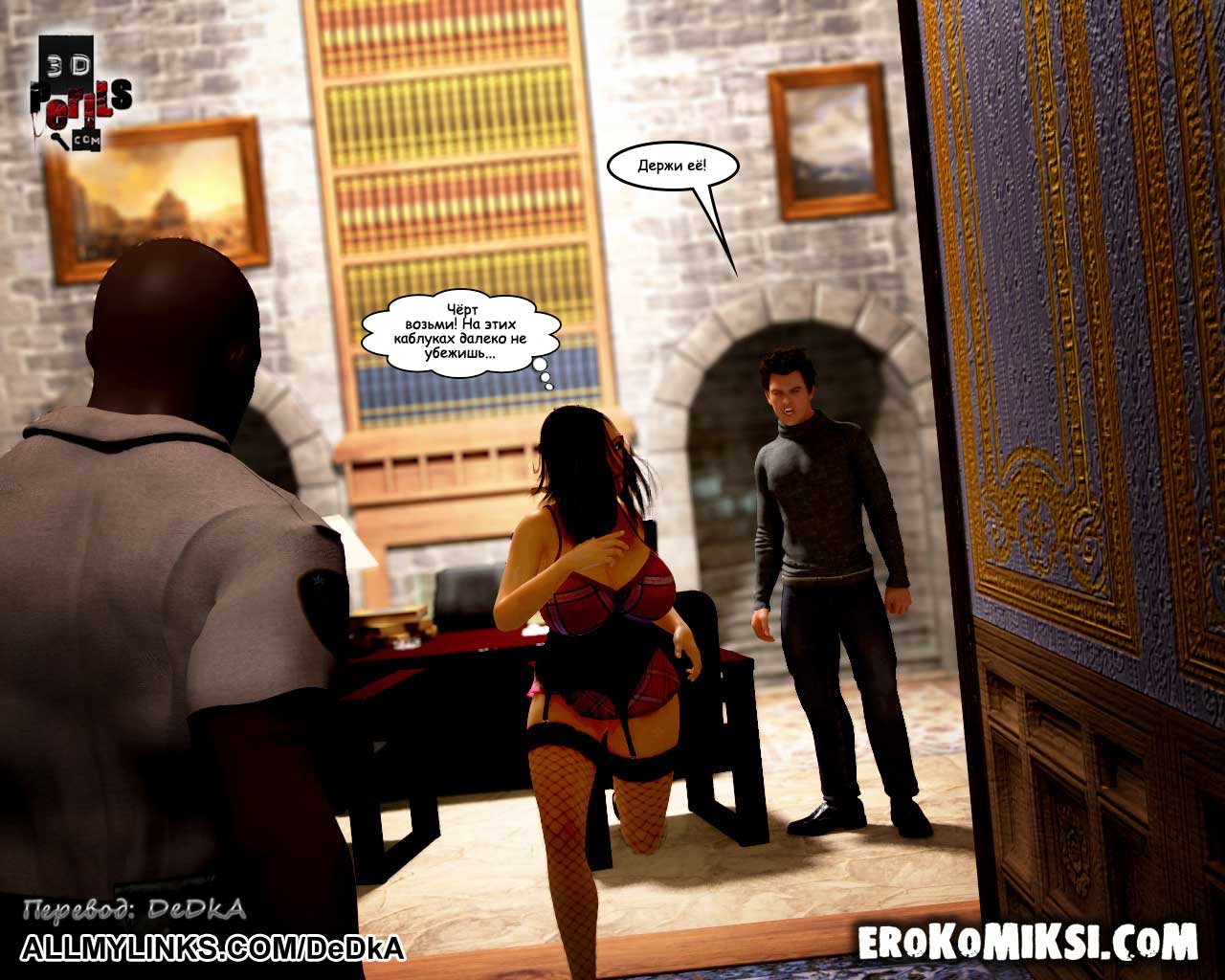 Секс комикс Похищение. Часть 7. Начальник тюрьмы. Проведя свою первую ночь в странной частной тюрьме, героиня комикса была вызвана к начальнику тюрьмы, где её ожидал совершенно невероятный сюрприз! В кабинете начальника тюрьмы она увидела своего возлюбленного! Несчастная девушка решила, что он нашёл её и пришёл, чтобы освободить! Каково же было её разочарование, когда она узнала, что… Что она узнала, вы узнаете из очередного эпизода комикса «Похищение» — Начальник тюрьмы.