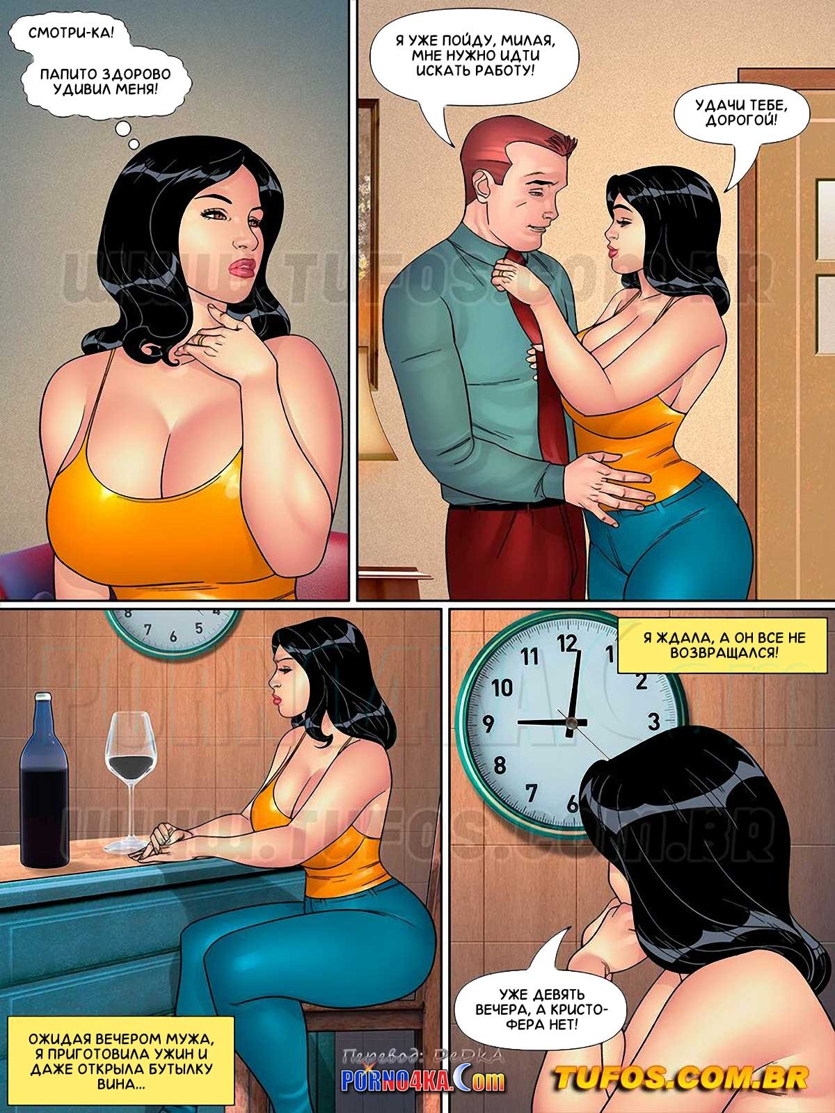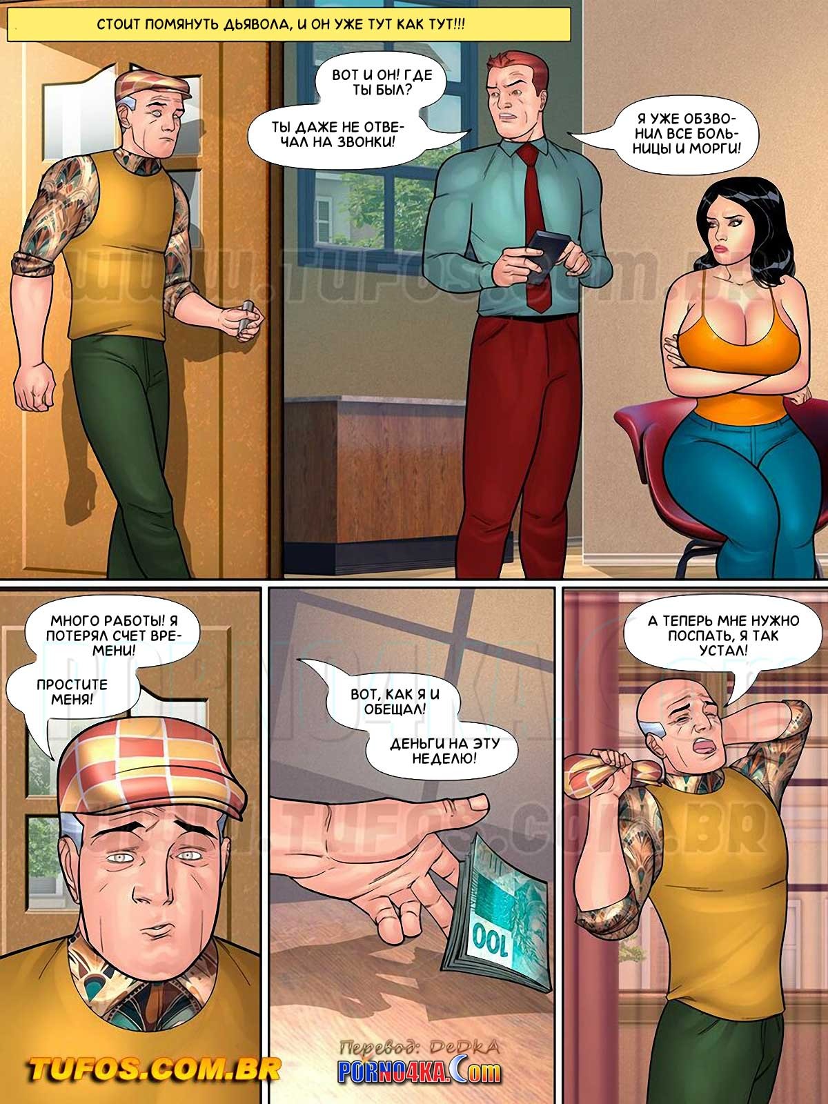 Секс комикс Похотливый папа мужа. Часть 5: Нестерпимая похоть. Папито провел всю ночь со шлюхами и, вернувшись утром в дом сына, спал весь день. Вечером, выспавшись и набравшись сил, Папито заглянул к горничной, Селене, зная, что она не откажет ему. Он не ошибся, но во время их забав Селена так громко стонала, что это привлекло внимание жены сына Папито, Клариссы, которая догадалась о причине стонов Селены и решила положить конец этому бесстыдству, но все пошло не так, как она хотела…