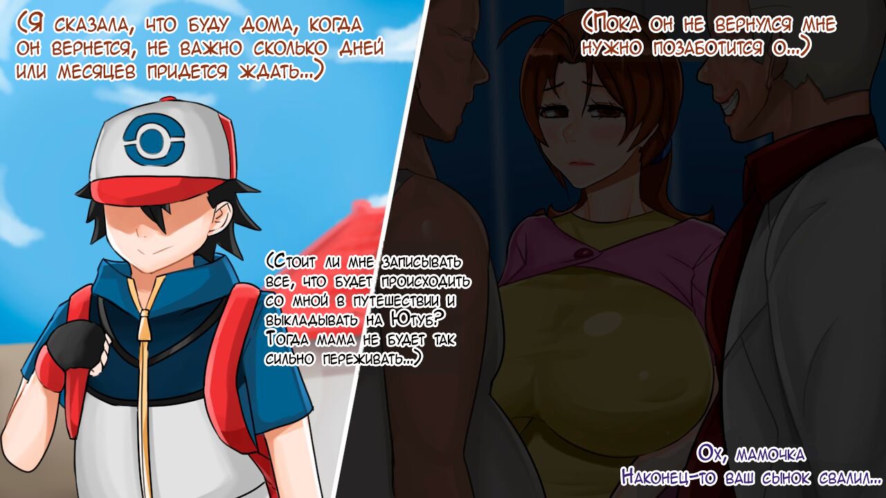 Секс комикс Покемон. Мама Эша. Часть 1. Зрелая мать проводила сына в путешествие, где он должен стать лучшим тренером покемонов, но тут ее пришли шантажировать и трахать…