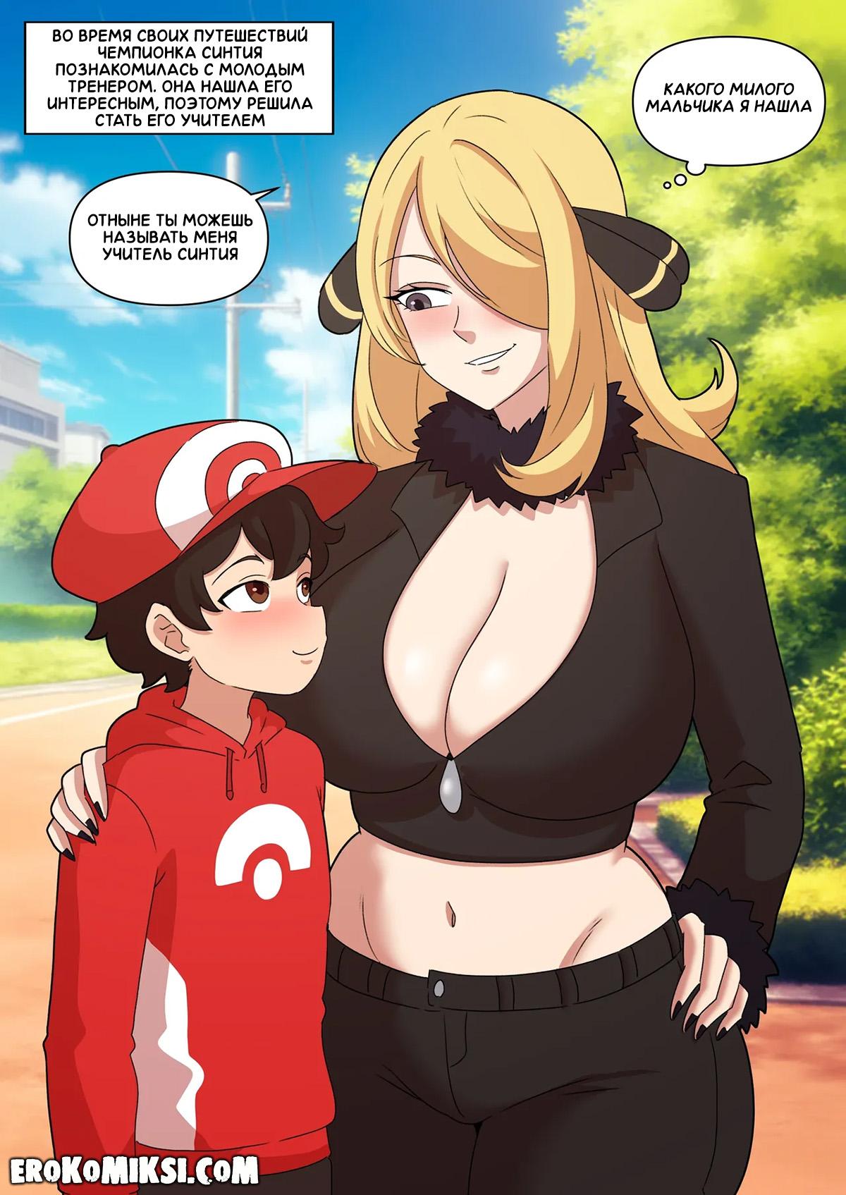 Секс комикс Покемон. Учитель Синтия. У Синтии появляется новый ученик, которого она решает обучать всем известным ей навыкам, но так как ей не нужны деньги, она будет брать с него плату за обучение сексом…