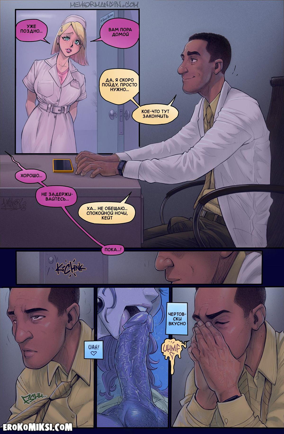 Секс комикс Помешательство. Melkor Mancin. Доктор Хартман устраивается глав врачом в новую больницу, и всё бы ничего, но он довольной озабоченный мужик с огромным членом, который всегда хочет трахаться и ему начинает казаться, что все сексуальные медсёстры мечтают о нём, и хотят чтобы он трахнул их тугие киски…