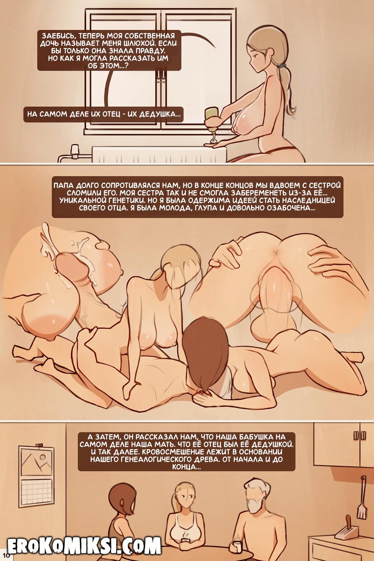 Секс комикс Порочная родословная. В семье Люсии есть одна тайна, все в её роду трахаются друг с другом и живут в инцесте. Люсия переживает, что и её дети унаследуют тоже самое, и её опасения оказываются не напрасны, когда она застаёт свою дочь, отсасывающую член своему родному брату, но это зрелище так возбуждает Люсию, что она решает присоединиться к детям…