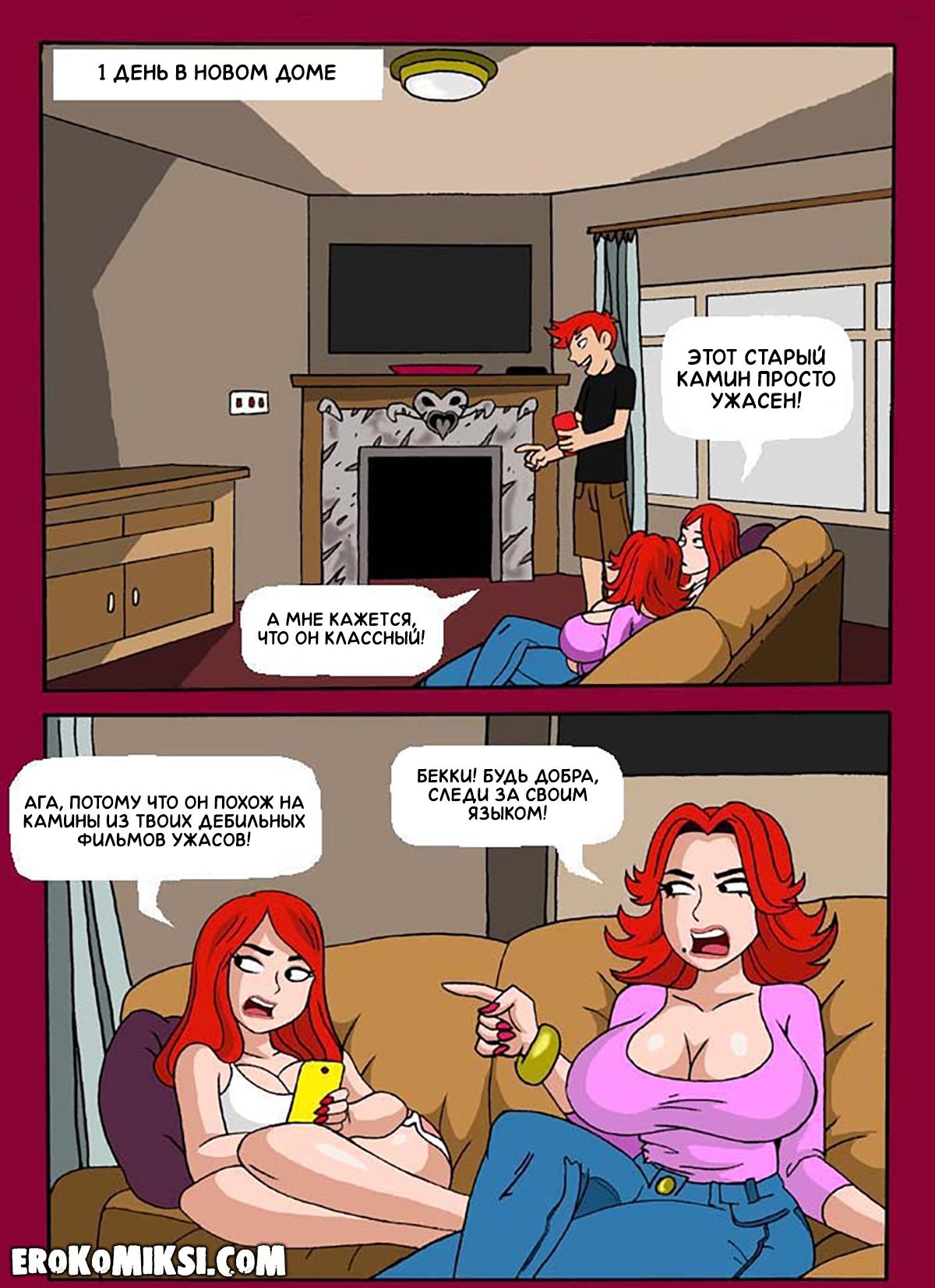 Секс комикс Портал похоти. Часть 1. Розалин и её дети подростки, Бекки и Тоби переезжают в новый дом, в котором обитает нечистая сила, которая очень сильно повлияет на сексуальную жизнь новых обитателей дома…