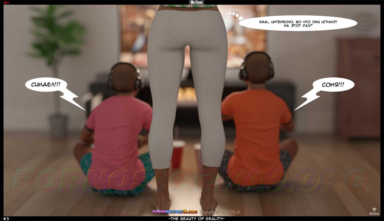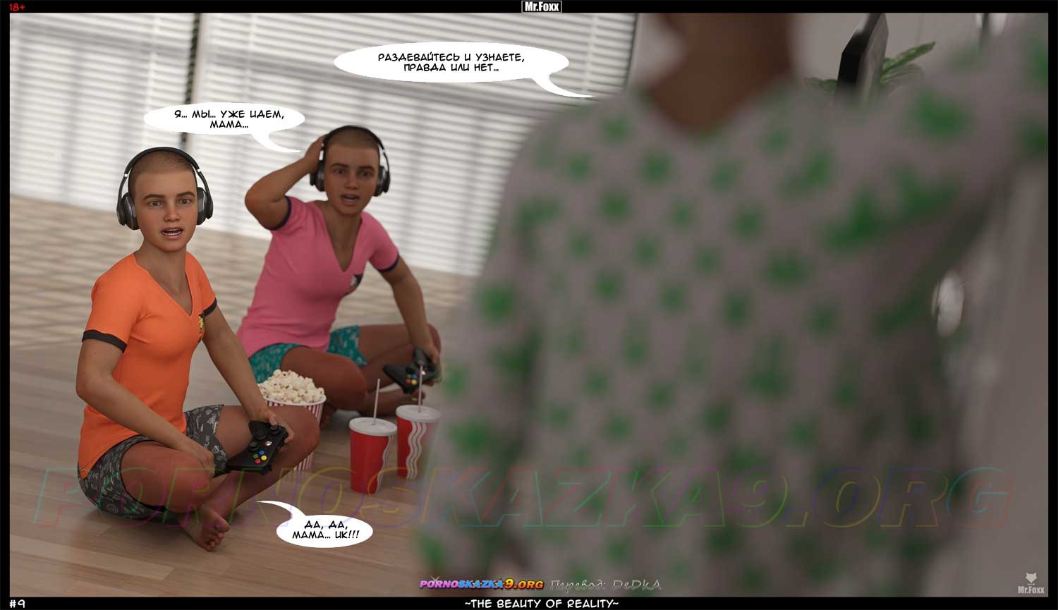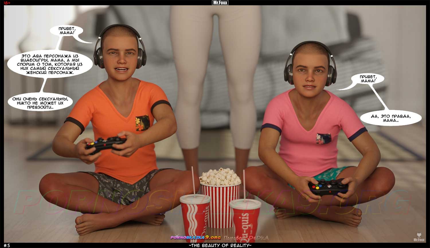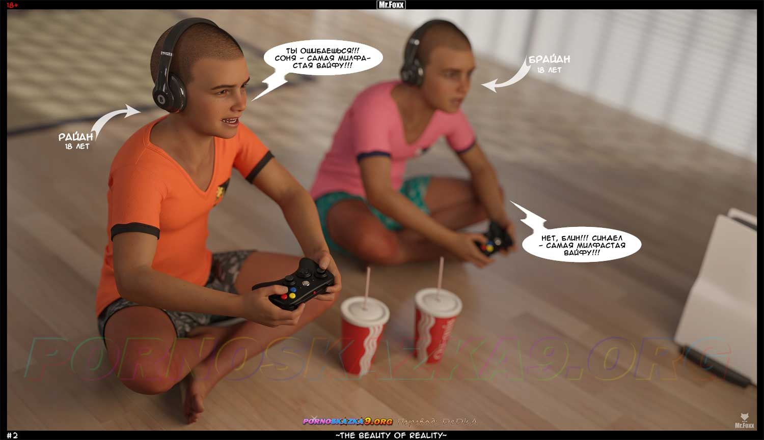 Секс комикс Прелесть реальности. Mr.Foxx. Братьям-близнецам уже по 18 лет, а они все еще играют в те видеоигры, где есть грудастые тетки, и спорят о том, которая милфа сексуальнее. И для того, чтобы навсегда отвлечь их от таких видеоигр, есть только один способ. Кто-то должен предложить им сравнить на практике, что лучше, реальная милфа или виртуальная?