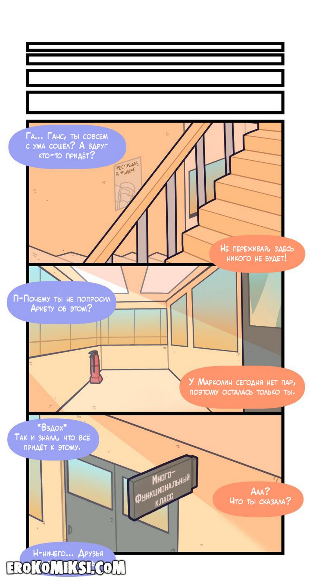 Секс комикс Привет, Марколин. Часть 20. После окончания занятий Ганс решил поговорить со своей подругой и предложить ей попробовать анальный секс. Девушка сначала отказывалась, но в итоге согласилась…