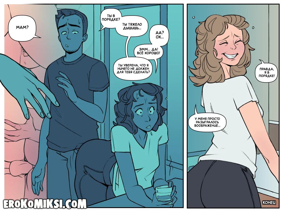 Секс комикс Разыгравшееся воображение. Мамочка посмотрела на своего взрослого сына и представила, как этот молодой красавец подойдёт и страстно поцелует её, а затем разденет и начнёт ласкать её нежную большую грудь и конце как следует трахнет её тугую киску огромным членом, доставив ей массу удовольствия…