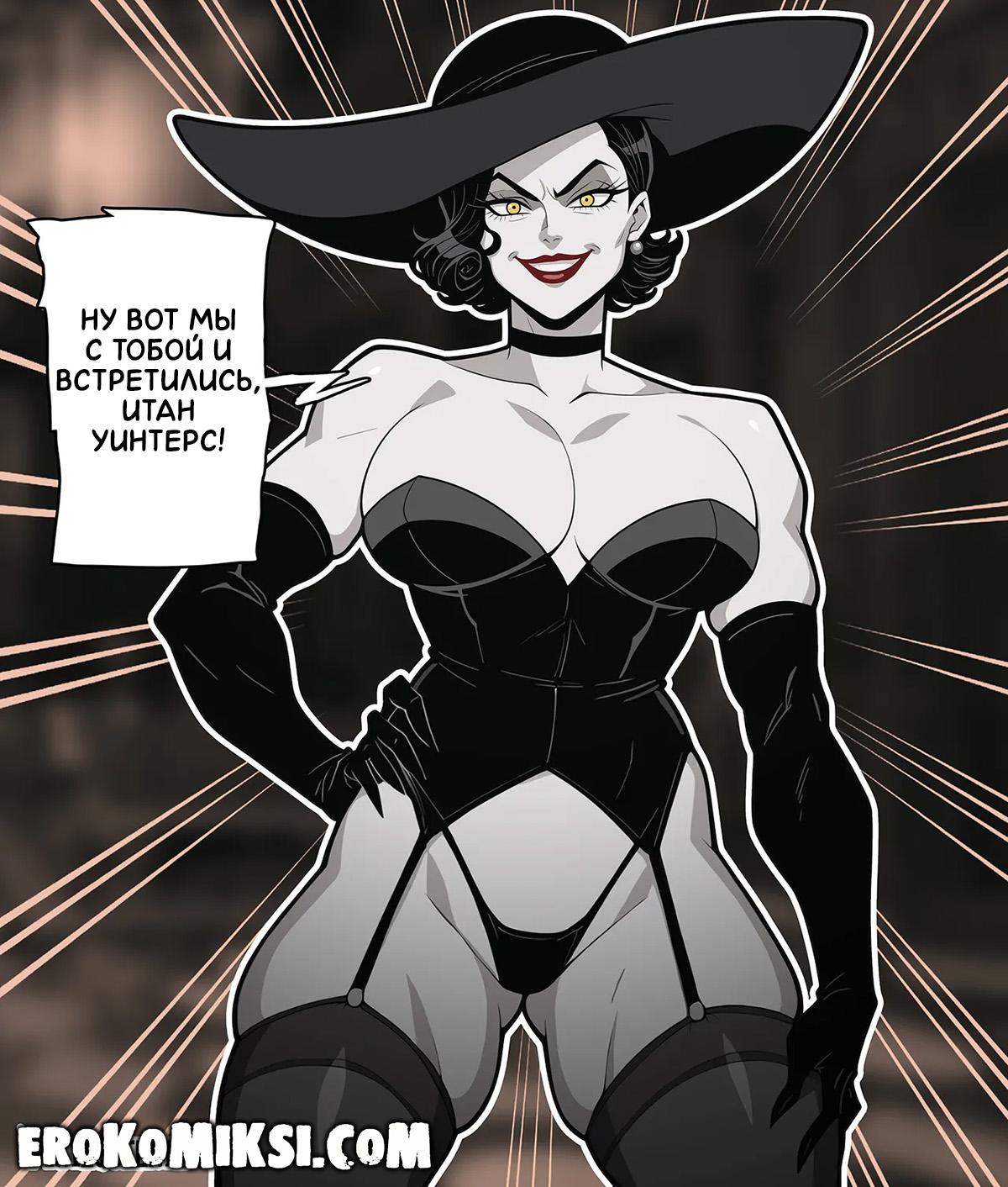Секс комикс Resident Evil. Секрет Итана Уинтерса. Итан Уинтерс попался Алисии Димитреску и она собиралась его убить, но заметила огромную выпуклость у него в штанах. Расстегнув ширинку паренька, перед графиней предстал огромный член и Димитреску решила сперва как следует позабавиться с этим огромным членом…