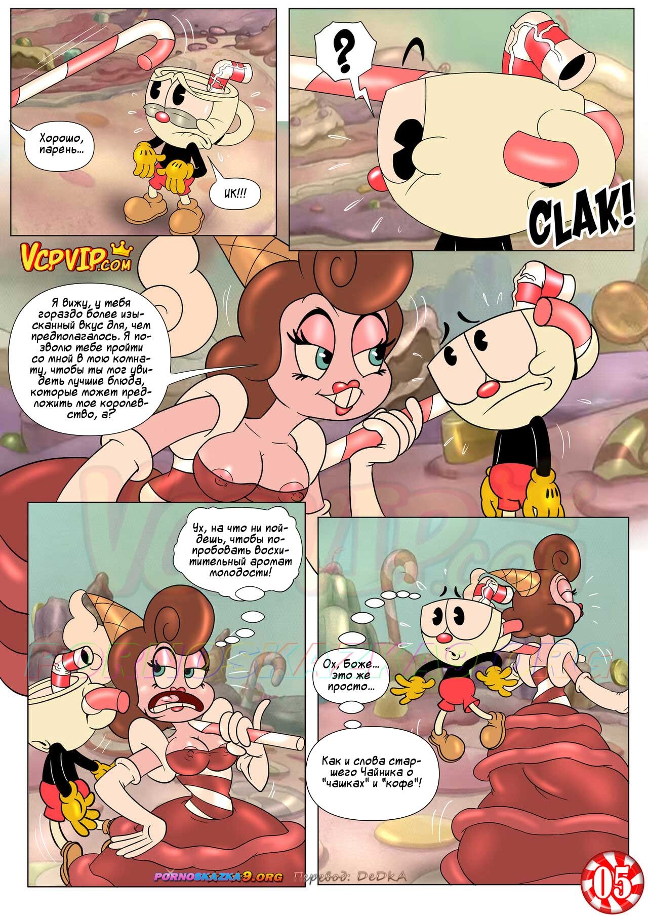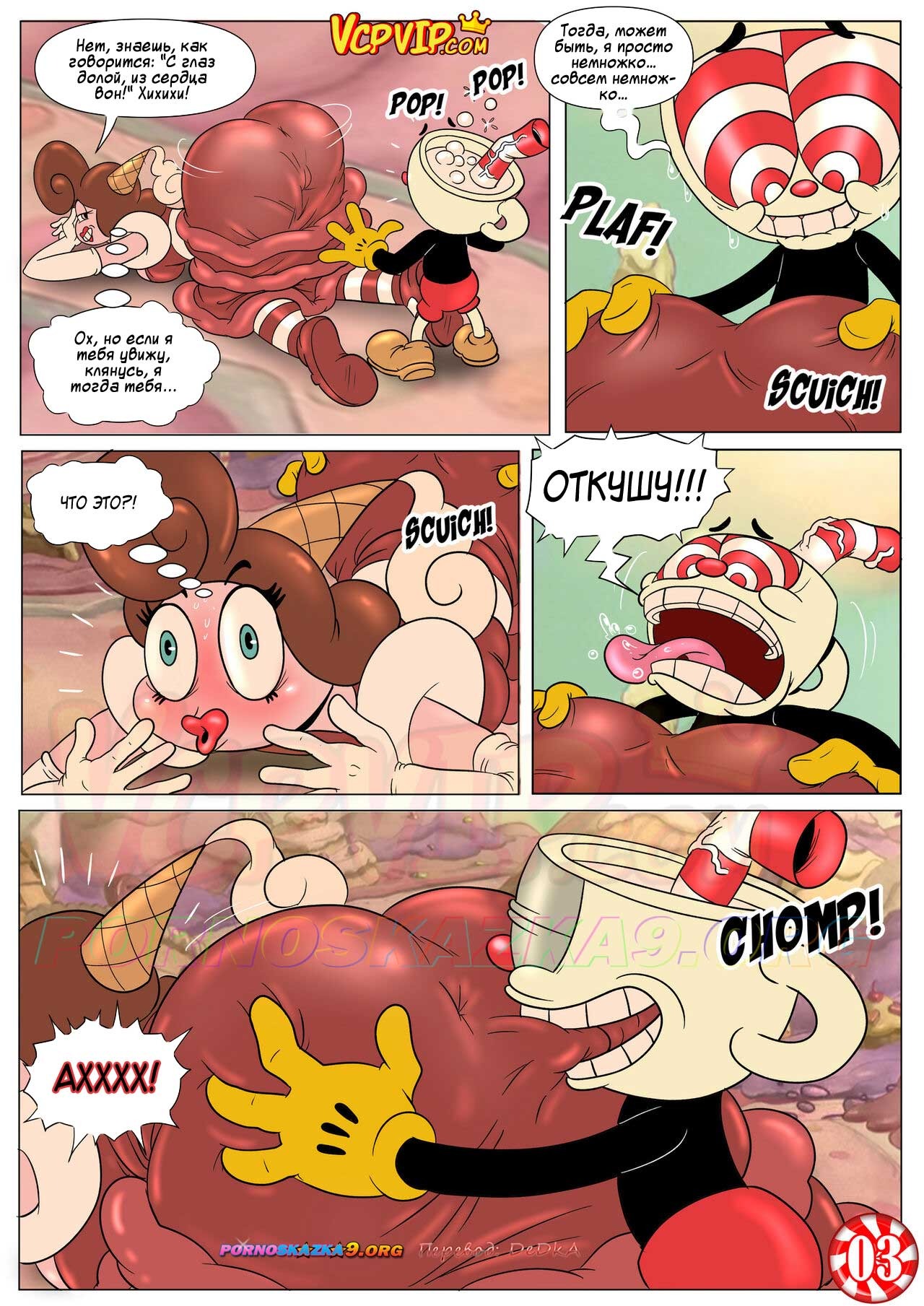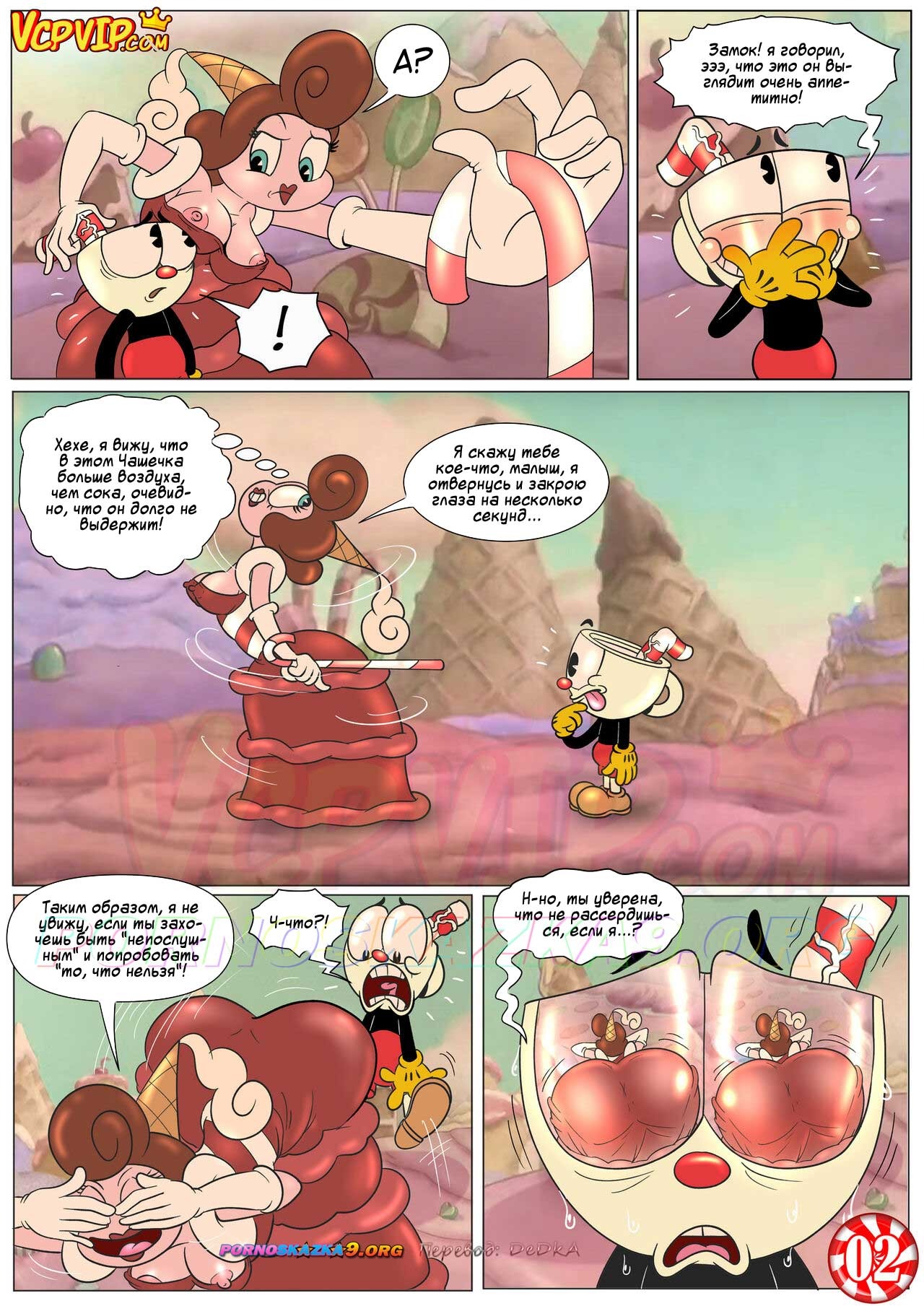 Секс комикс Шоу Чашека! Восхитительно сладкая конфетка. Порнографическая мульт пародия на популярный анимационный сериал «The Cuphead Show!» — «Шоу Чашека!». Речь в нем пойдет о приключениях импульсивного Чашека… Как вы понимаете парню некуда деть свою сексуальную энергию, а милфа поможет с этим…