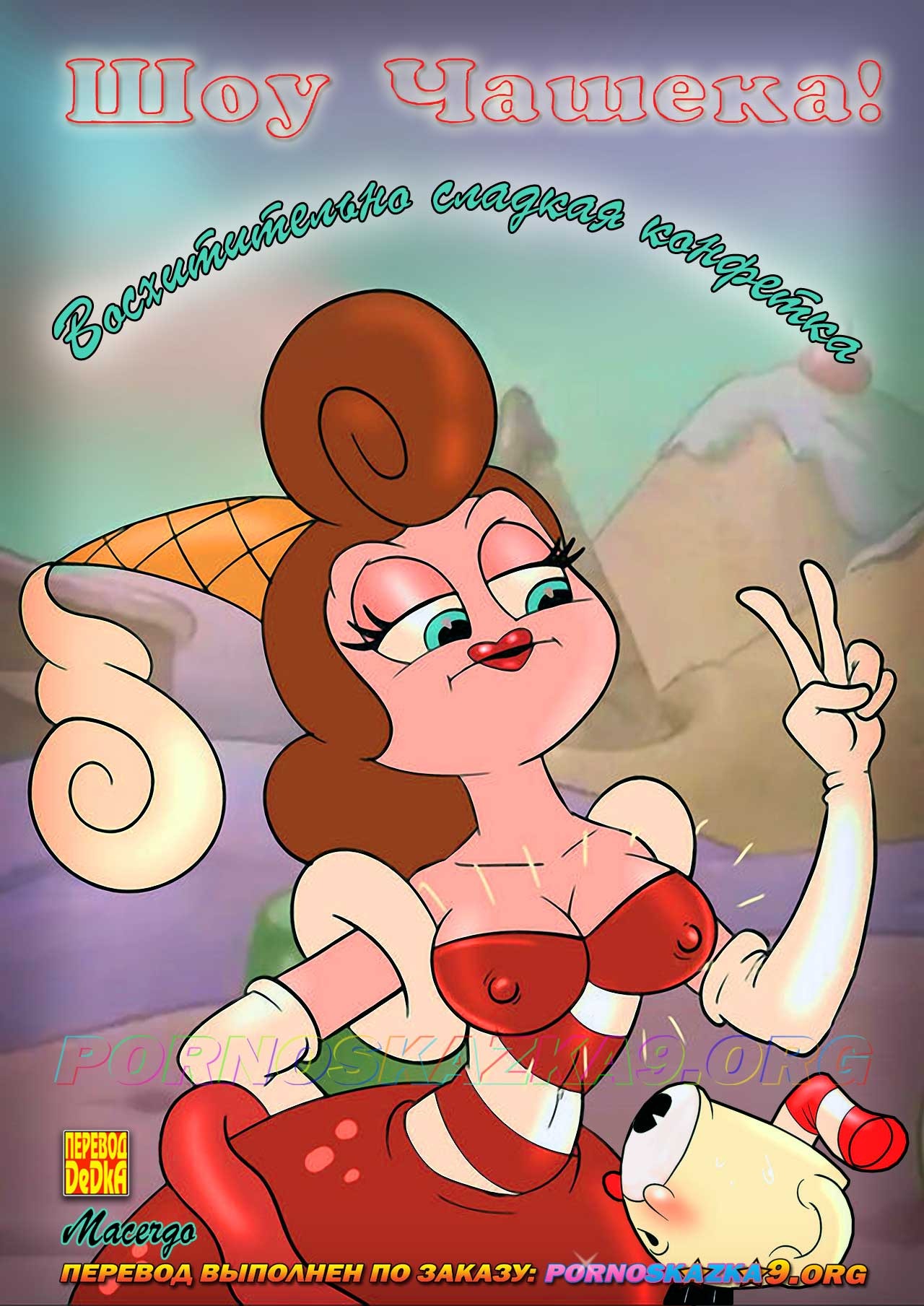 Секс комикс Шоу Чашека! Восхитительно сладкая конфетка. Порнографическая мульт пародия на популярный анимационный сериал «The Cuphead Show!» — «Шоу Чашека!». Речь в нем пойдет о приключениях импульсивного Чашека… Как вы понимаете парню некуда деть свою сексуальную энергию, а милфа поможет с этим…