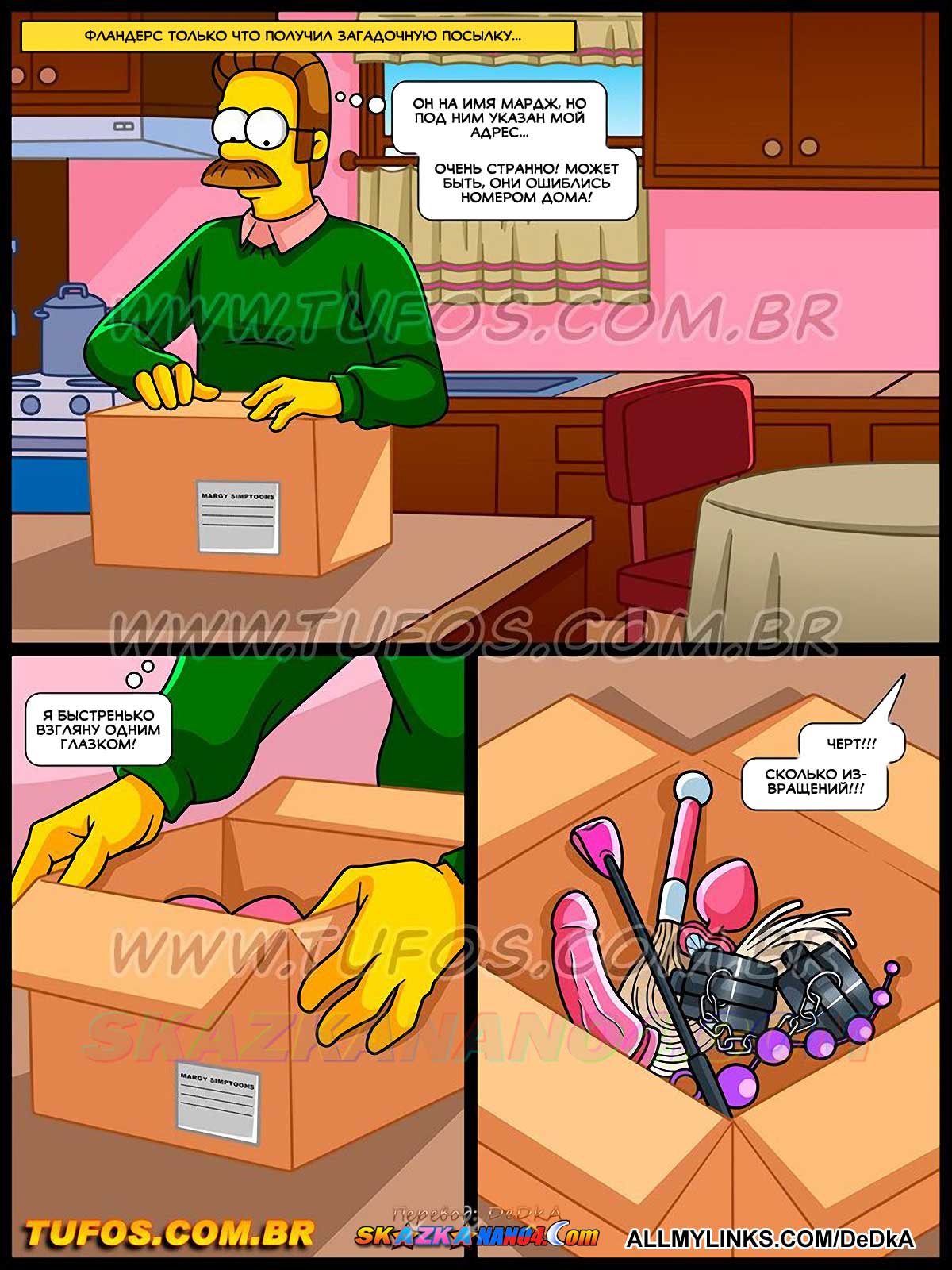 Секс комикс Симпсоны. Часть 72: Садомазохистская посылка. Фландерс получил таинственную посылку, адресованную ему домой, но с пометкой «для Маржд»… Из любопытства он открывает посылку и обнаруживает в ней несколько садомазохистских штучек! Ошеломленный содержимым посылки, он решает немедленно передать ее настоящему адресату…