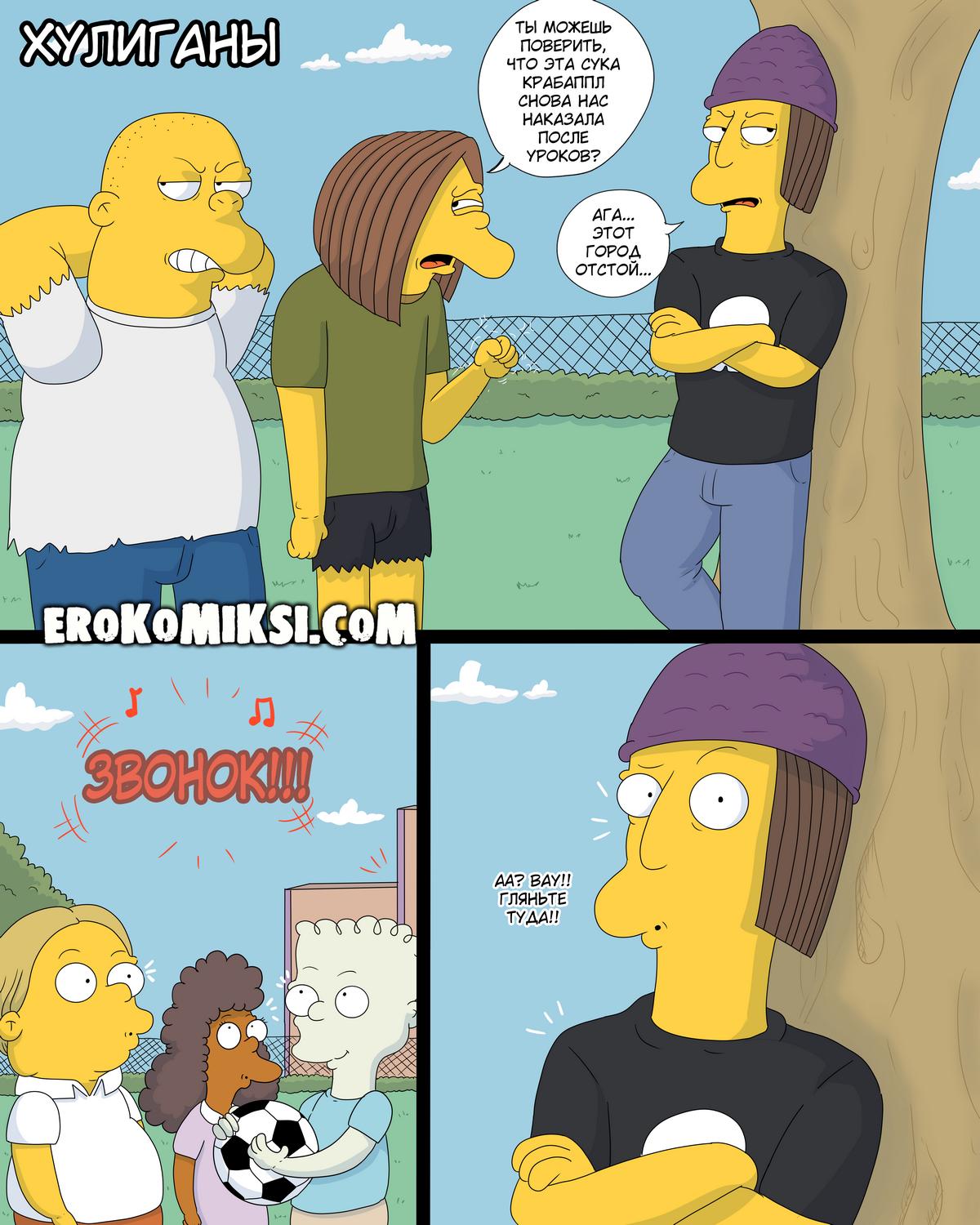 Секс комикс Симпсоны. Хулиганы. The Bullies. Marecattus. Хулиганы из Спрингфилда озабочены похотливыми фантазиями и желаниями. Эти парни обожают ебать МИЛФ. И их легкой сексуальной добычей становятся самые соблазнительные ЗРЕЛКИ города, которых эти парни жестко трахают и кончают внутрь их дырочек…