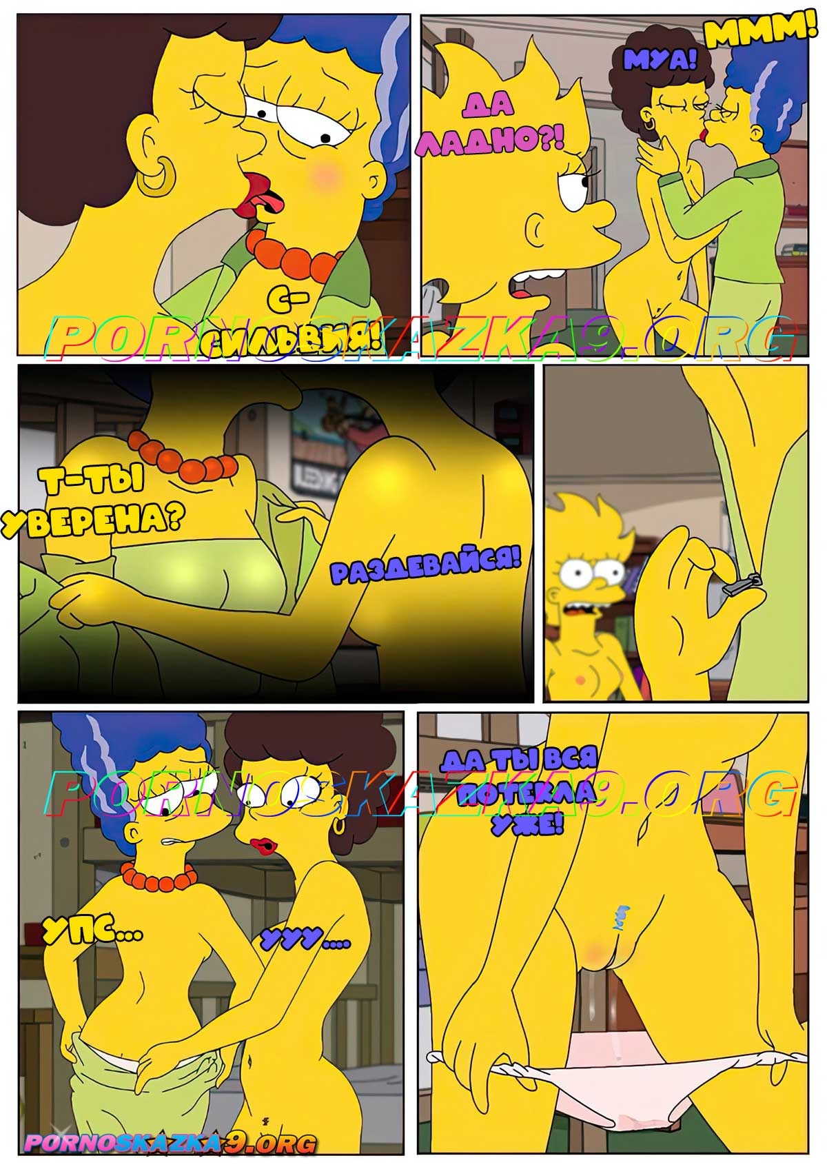 Секс комикс Симпсоны. История Лизы. Лизу и Сильвию, случайно застукала Мардж, заметившая их. И в самый разбор этой неловкой ситуации Сильвия решает действовать… А что будет далее увидите, прочитав данный порно комикс…