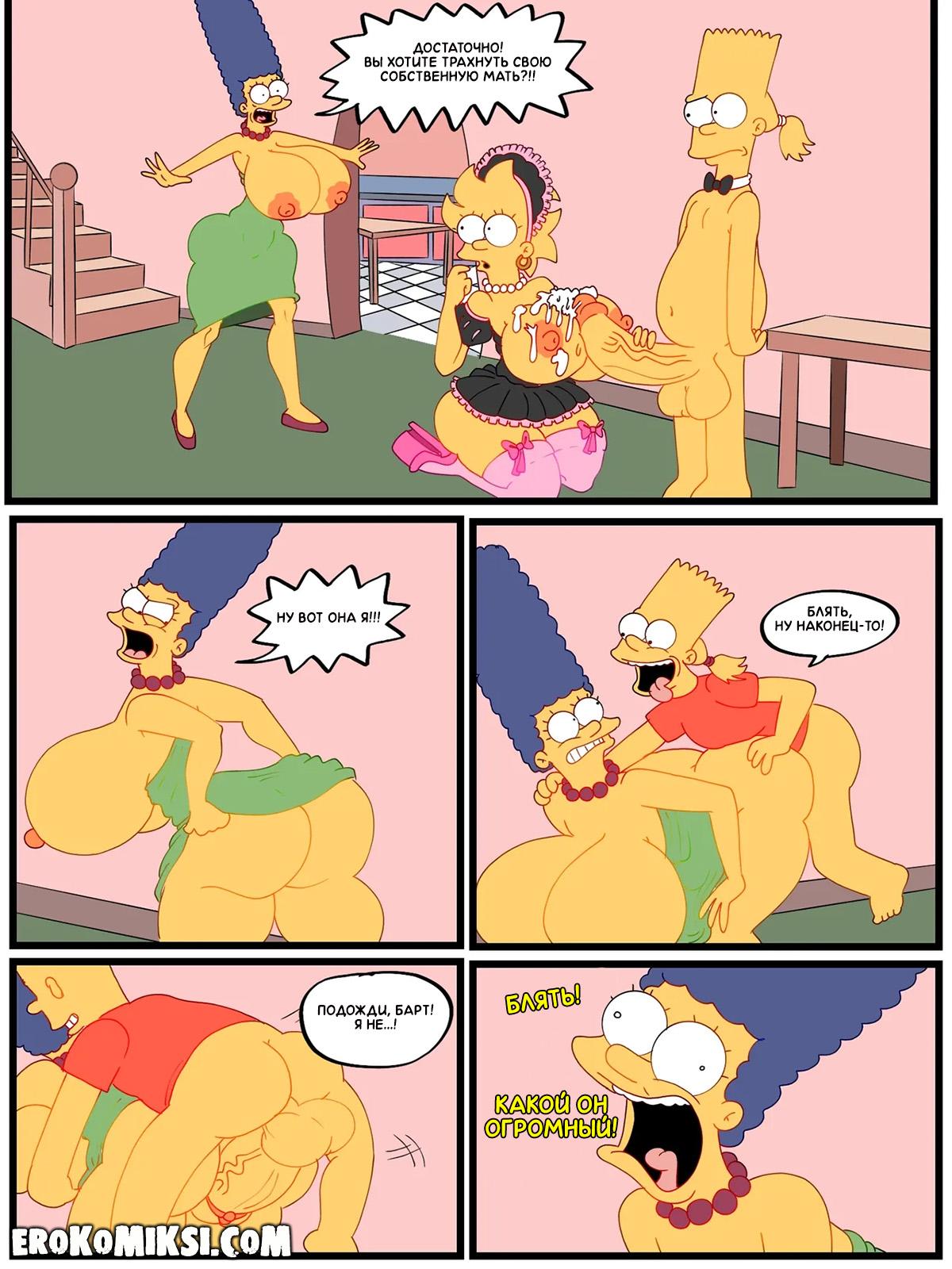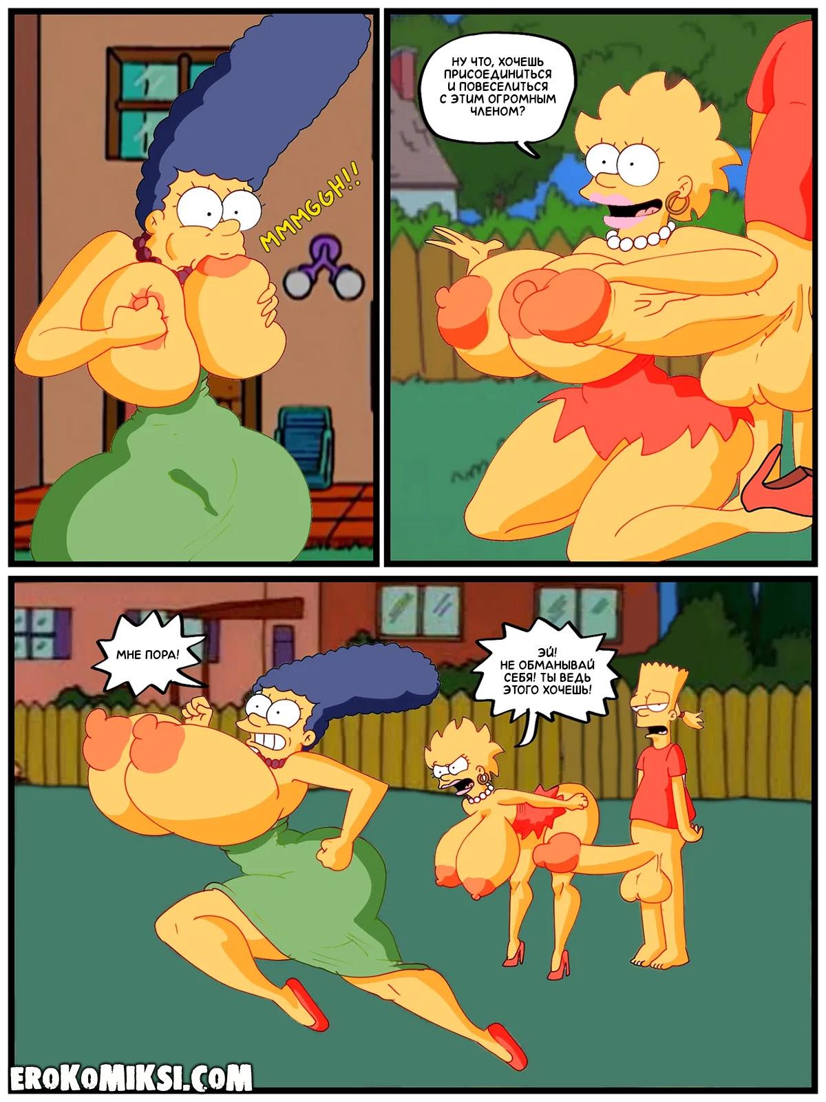 Секс комикс Симпсоны. Побег от греха. Мардж постоянно застукивает трахающихся Барта и Лизу, которые пытаются соблазнить мать и предлагают к ним присоединиться, однако, Мардж пытается всячески избежать искушения, но в итоге не выдерживает и присоединяется к детям.
