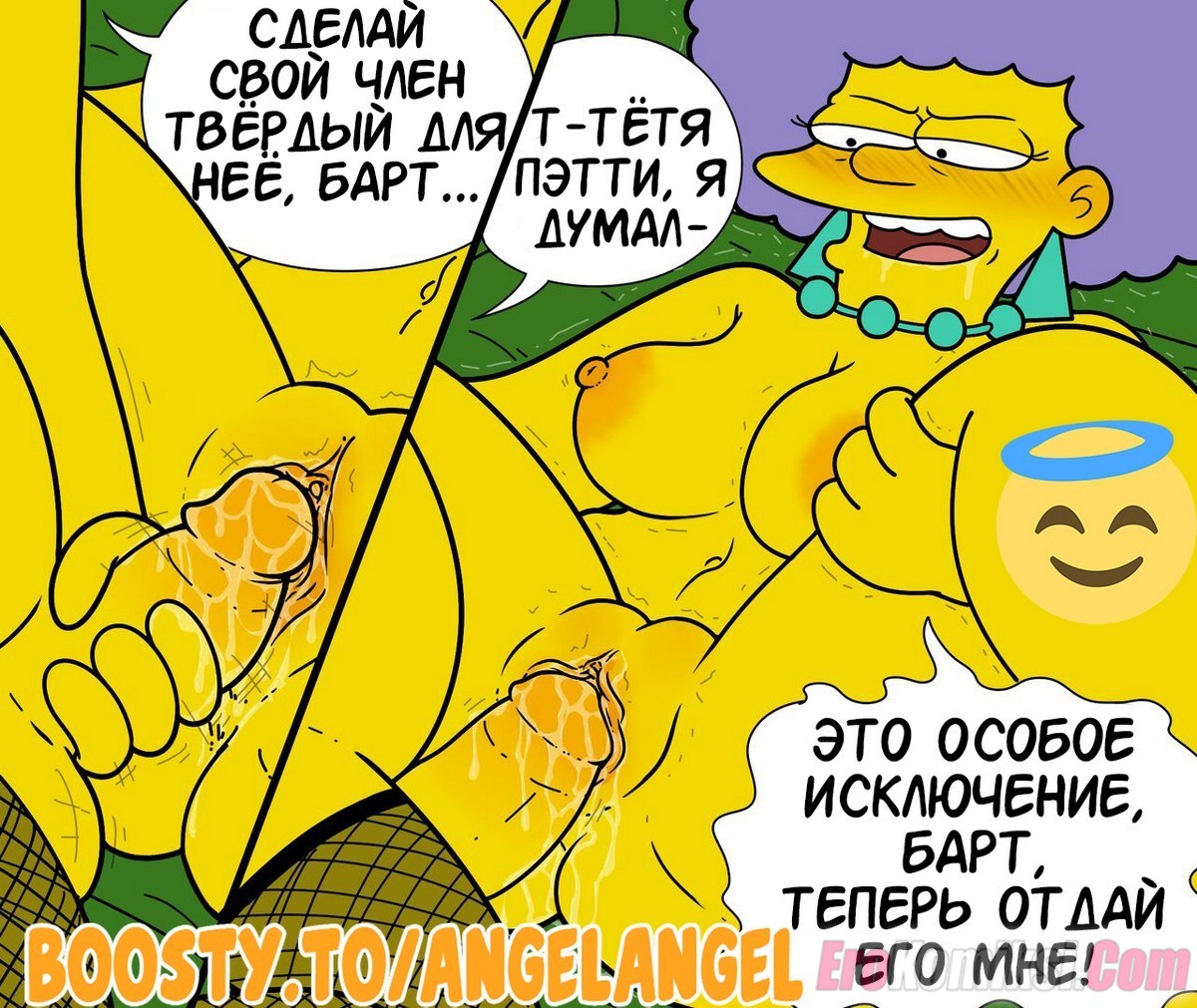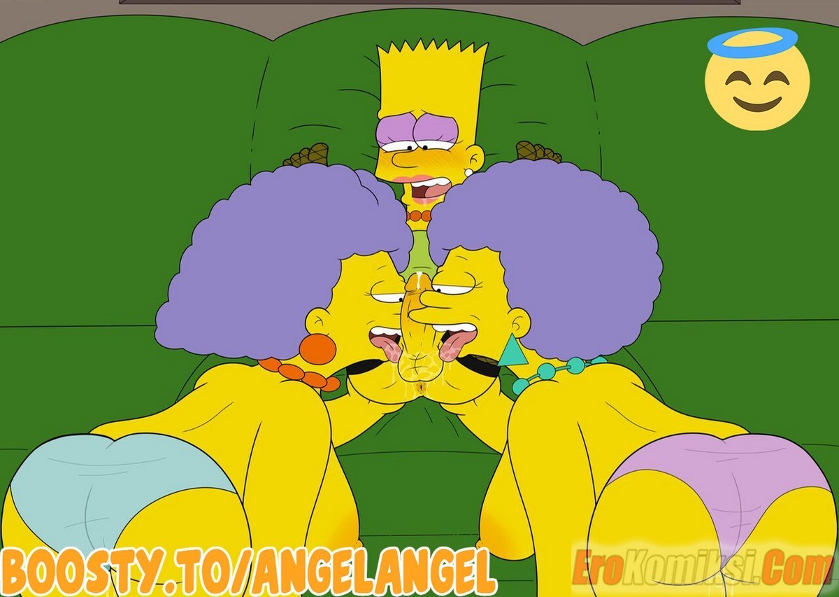 Секс комикс Симпсоны. Путь. Аппетитные большегрудые тетки Барта пригласили парня к себе домой, устроить, так сказать сексуальную оргию. Только условием того, что Барт их трахнет было то, что он накрасится. Парню было все равно, лишь бы присунуть во все щели зрелым милфам…