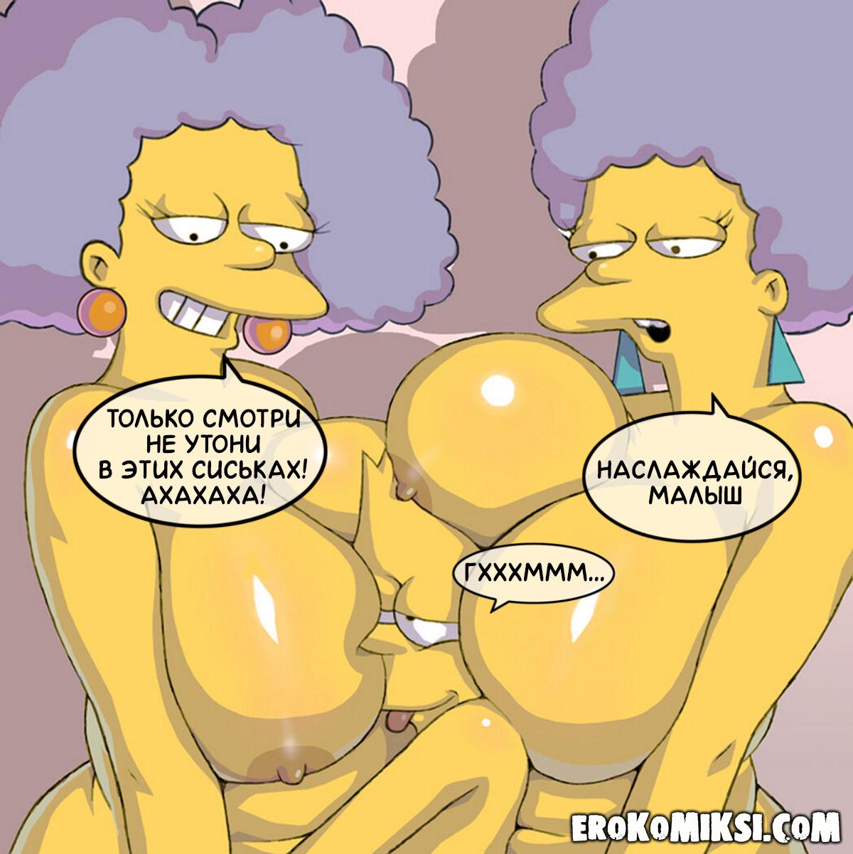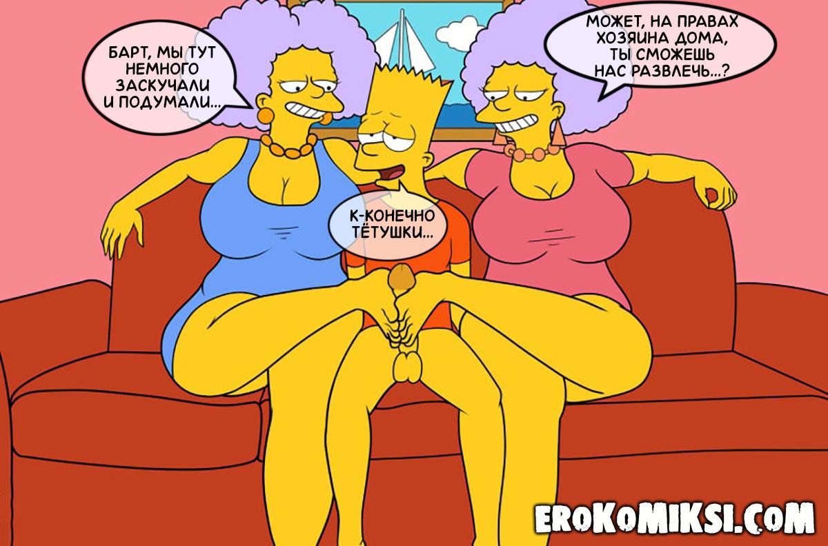 Секс комикс Симпсоны. Сельма и Пэтти соблазняют Барта. Полноценная версия с Текстом!!! Сельма и Пэтти дико возбуждены и им хочется большого члена, чтобы удовлетворить их потребности. Они решаются соблазнить своего племянника Барта, который с лёгкостью клюнул на аппетитные формы своих тётушек и с радостью обработал их своим огромным членом…