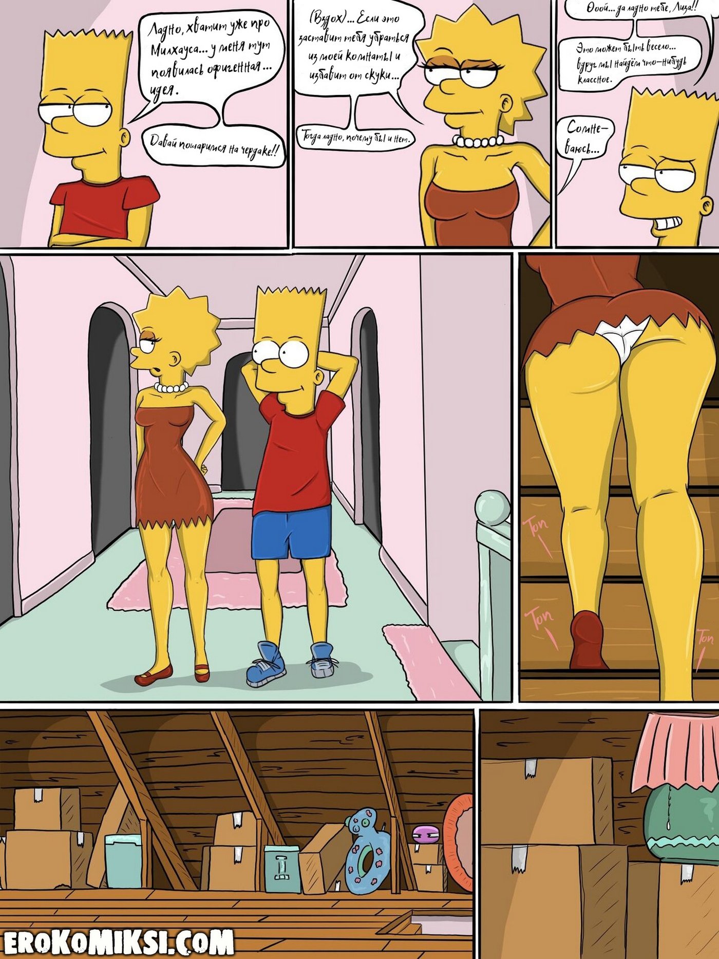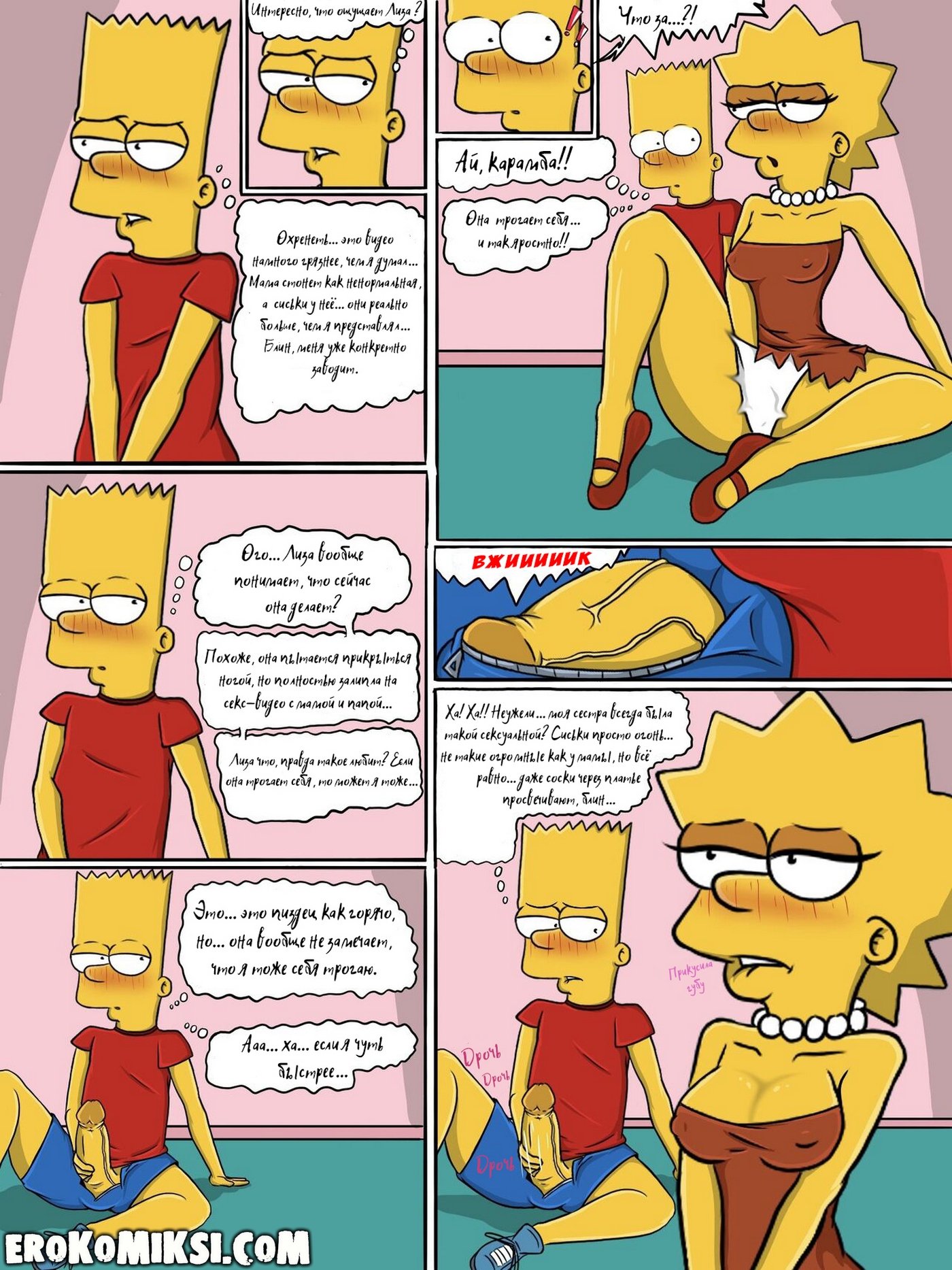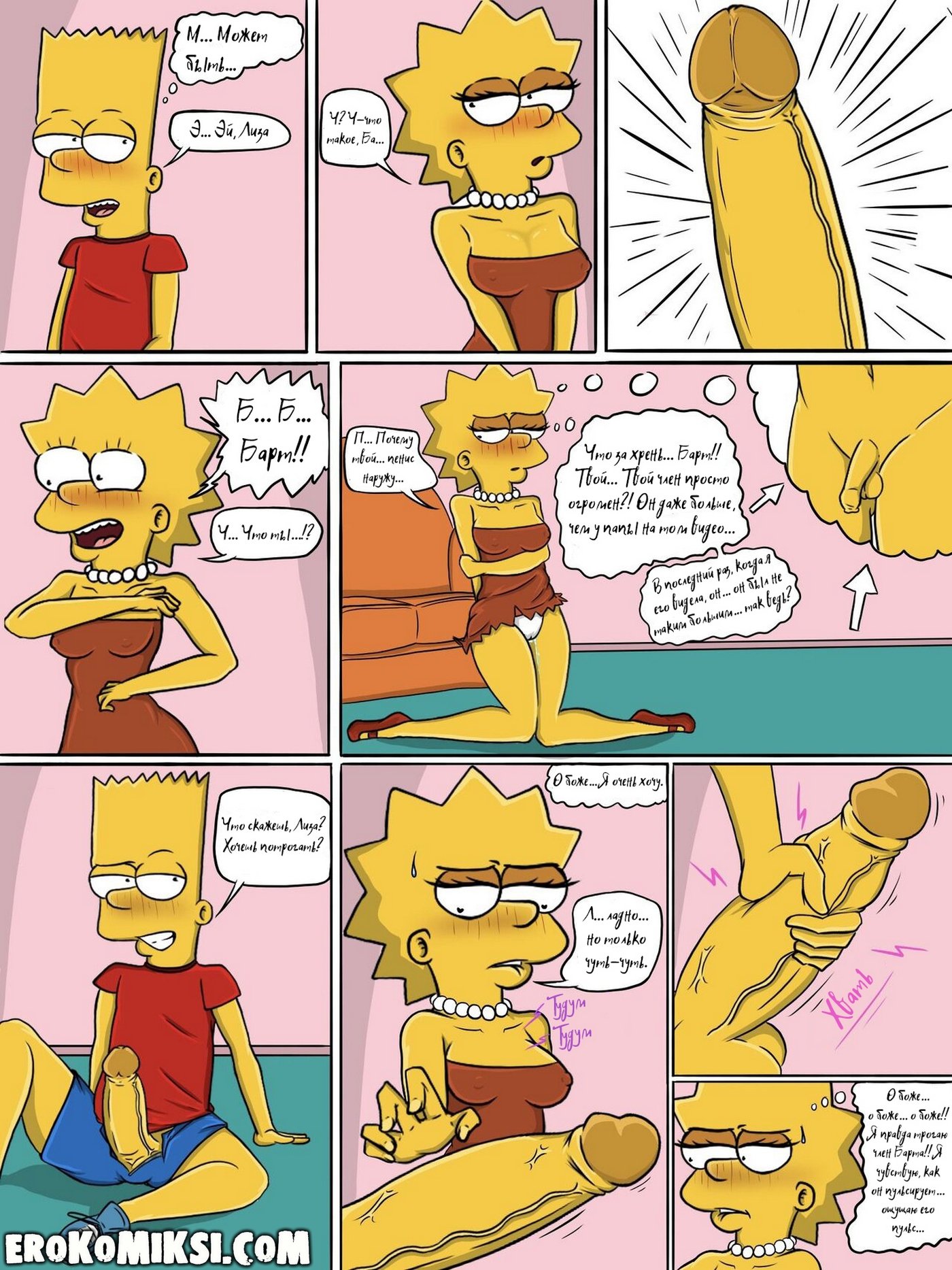 Секс комикс Симпсоны. Шаг за границу дозволенного. Всё начинается с безобидного момента: Лиза остаётся одна и вступает в привычный диалог с Бартом, который быстро переходит в напряжённое противостояние. Её эмоции выходят из-под контроля, а решения становятся всё более рискованными и необдуманными. Кажется, она сознательно идёт на границу дозволенного, проверяя, насколько далеко можно зайти. Но в какой-то момент ситуация начинает развиваться не по её сценарию. И именно тогда становится ясно — это уже не просто игра, а нечто гораздо более серьёзное…