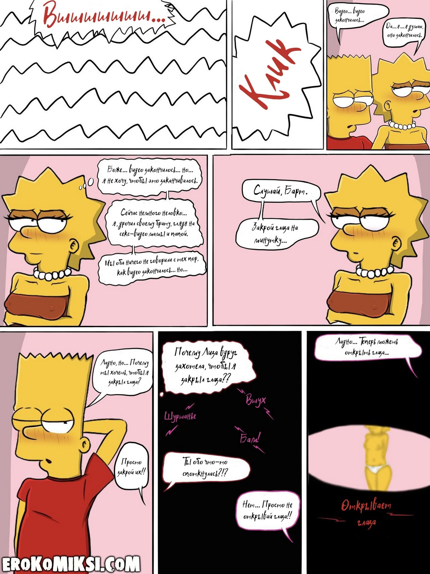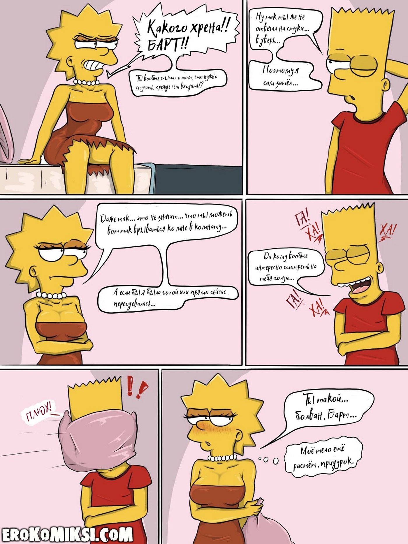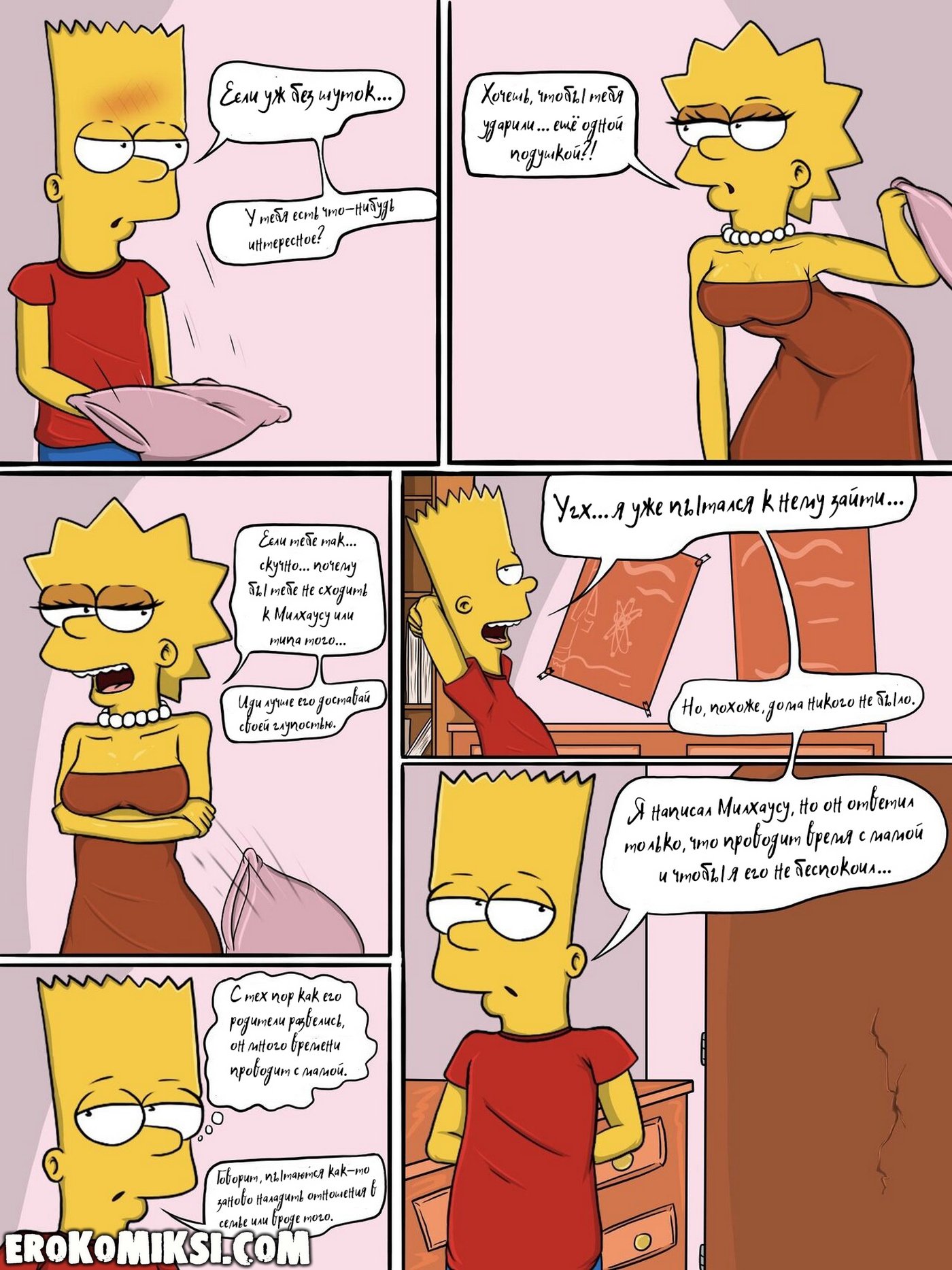 Секс комикс Симпсоны. Шаг за границу дозволенного. Всё начинается с безобидного момента: Лиза остаётся одна и вступает в привычный диалог с Бартом, который быстро переходит в напряжённое противостояние. Её эмоции выходят из-под контроля, а решения становятся всё более рискованными и необдуманными. Кажется, она сознательно идёт на границу дозволенного, проверяя, насколько далеко можно зайти. Но в какой-то момент ситуация начинает развиваться не по её сценарию. И именно тогда становится ясно — это уже не просто игра, а нечто гораздо более серьёзное…
