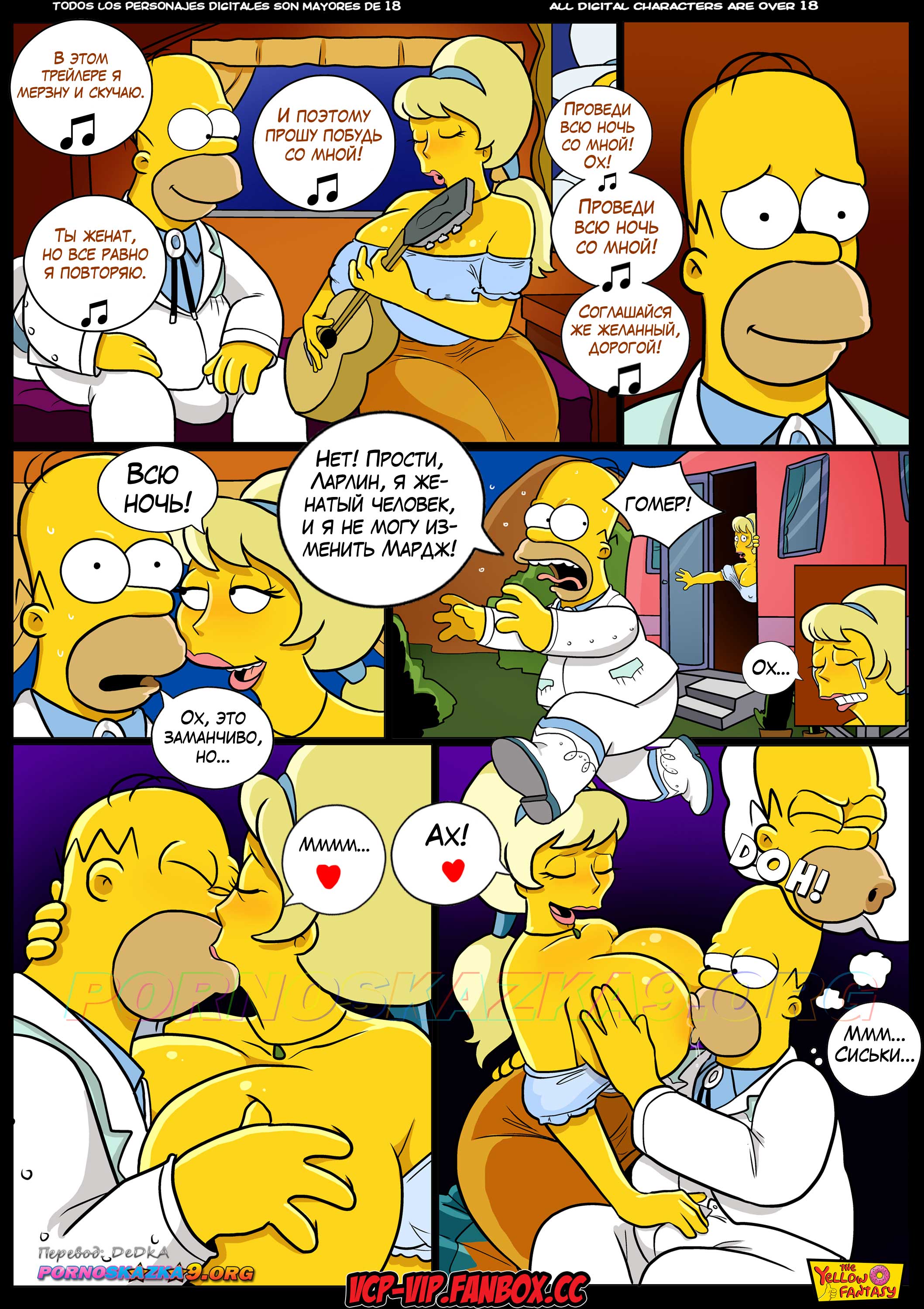 Секс комикс Симпсоны. Желтая Фантазия. Удовлетворяй ее нужды. Гомер Симпсон решил нанести неожиданный визит сладкоголосой Ларлин Лампкин, чтобы доказать ей, что он не жирный неудачник, а крутой и гениальный парень…