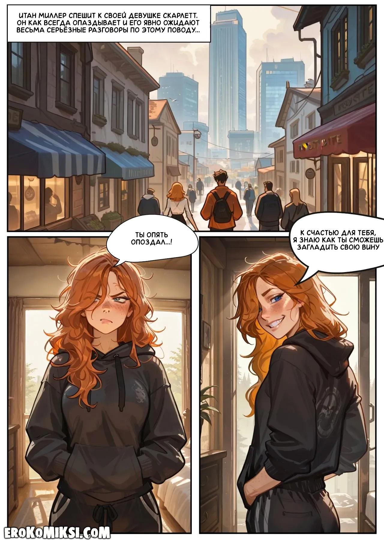 Секс комикс Скарлетт Блейз. Часть 1. Вкус подчинения. Скарлетт очень любит доминировать на парнями, поэтому, когда её друг Итан, опоздал на их встречу, Скарлетт заставила вылизывать её задницу, пока она не кончит…