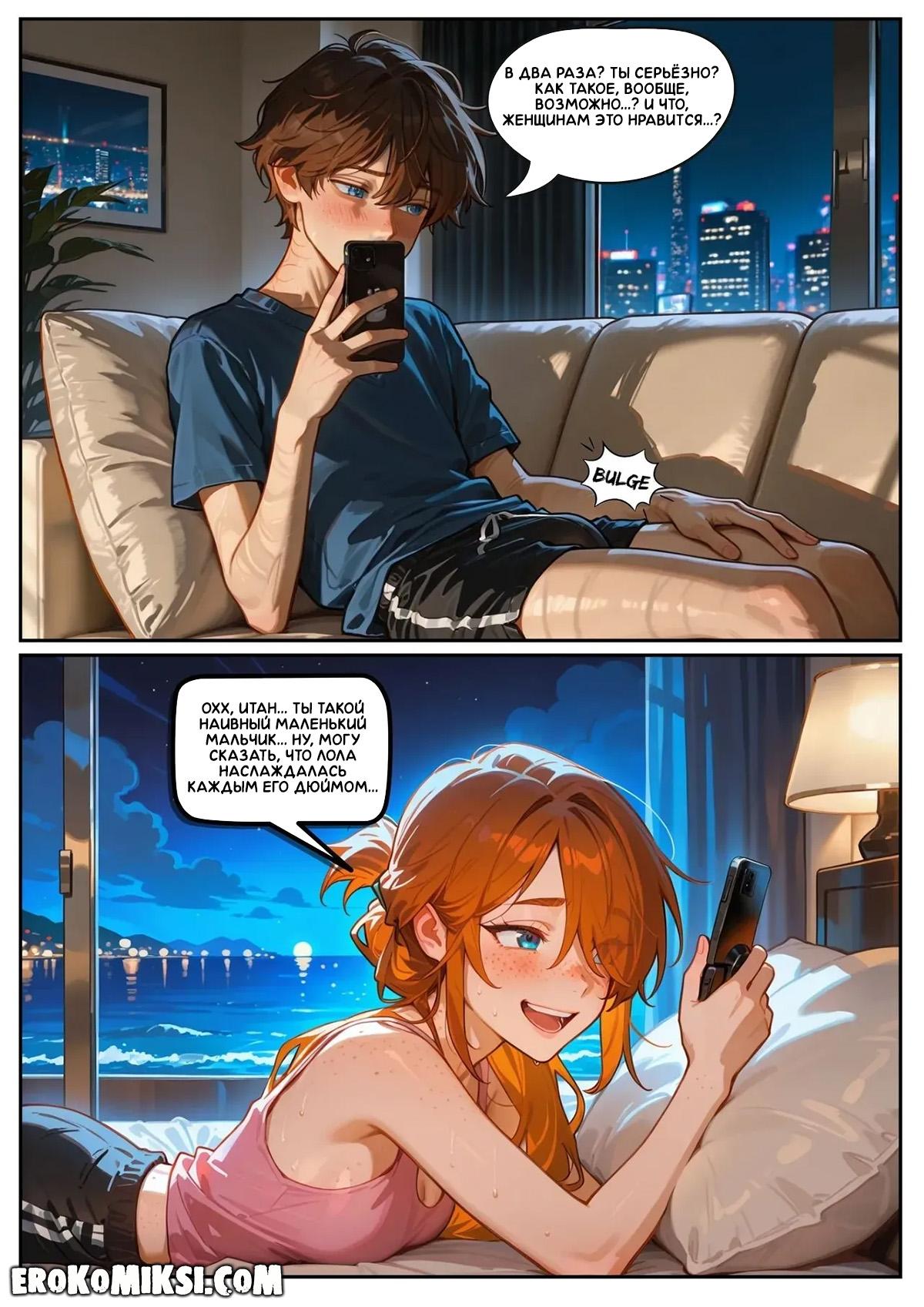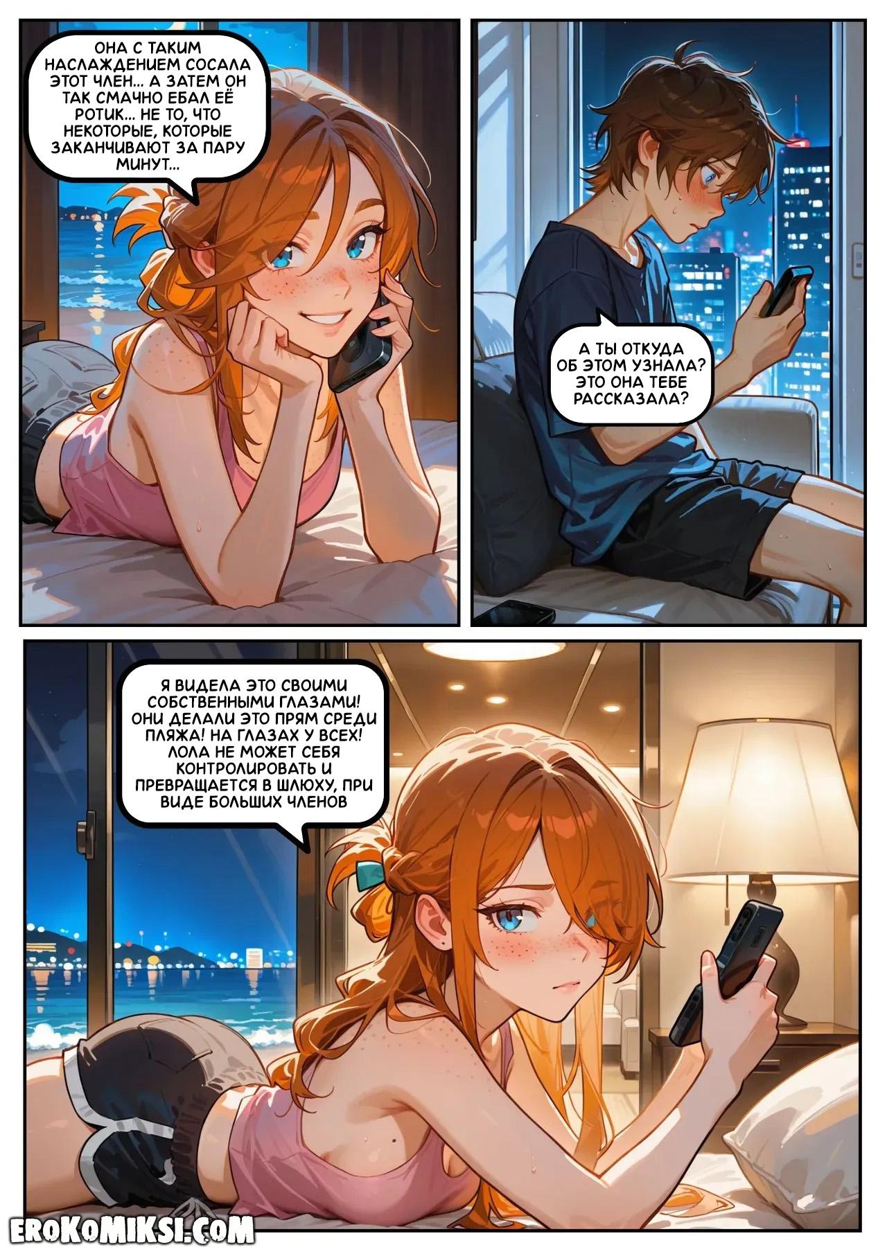 Секс комикс Скарлетт Блейз. Часть 5. Награда за сдержанность. Скарлетт под впечатлением от Лолы и делится этим с Итаном, рассказывая ему обо всём, что увидела. Во время разговора они возбуждаются и занимаются сексом по телефону…