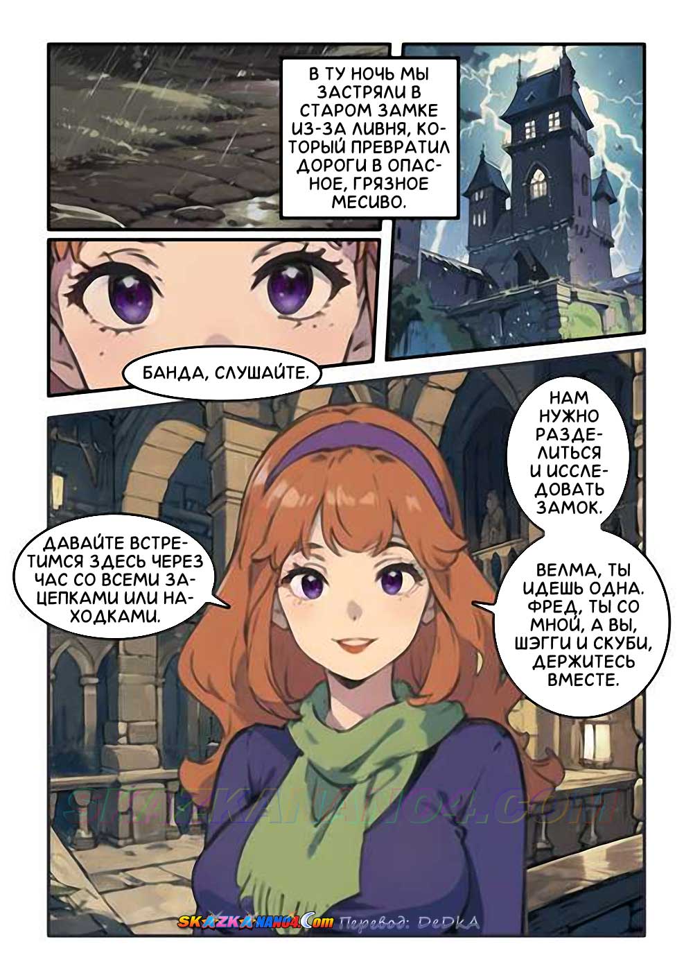 Секс комикс Скуби-Ду. Особый момент Дафны и Фреда. Той ночью мы застряли в старом замке из-за ливня, превратившего дороги в коварную грязную массу. Погода ухудшилась как раз в тот момент, когда мы собирались покинуть окраину небольшого городка, который приехали исследовать. Наша таинственная машина не смогла противостоять стихии, и мы решили укрыться в единственном убежище, которое смогли найти — зловещем старом замке, вырисовывавшемся на опушке леса…