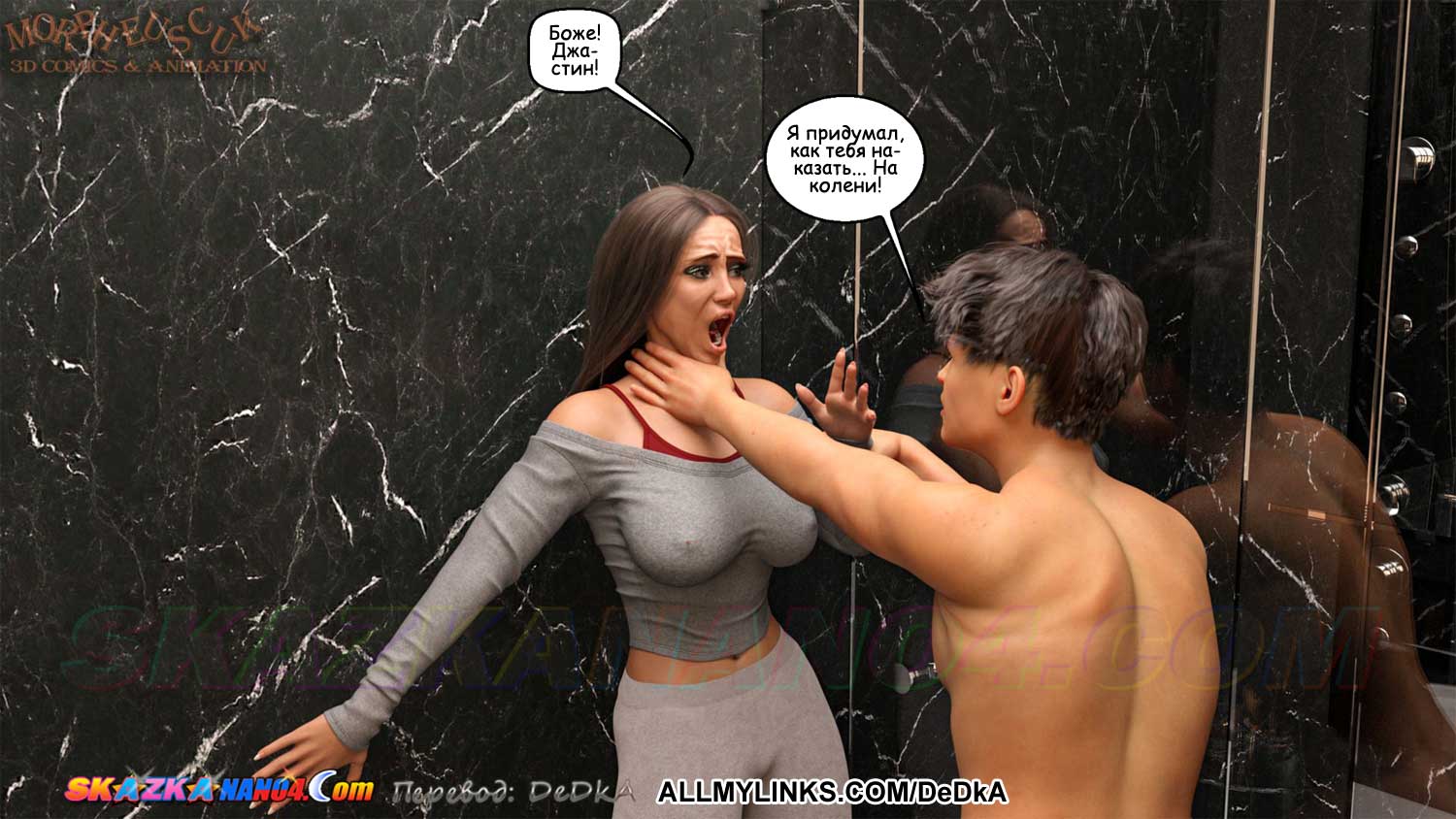 Секс комикс Соседи. Часть 14. Пока Аманда обдумывает, как ей справиться со сложившейся ситуацией, Джастин решает жестоко наказать Кейт за то, что она ворвалась в комнату, где он трахал Аманду. Вот только способ наказания Джастин выбрал неудачно. Он решил жестко трахнуть Кейт в задницу, но… какое же это наказание для такой сучки, как Кейт?