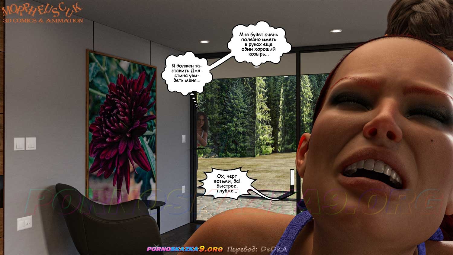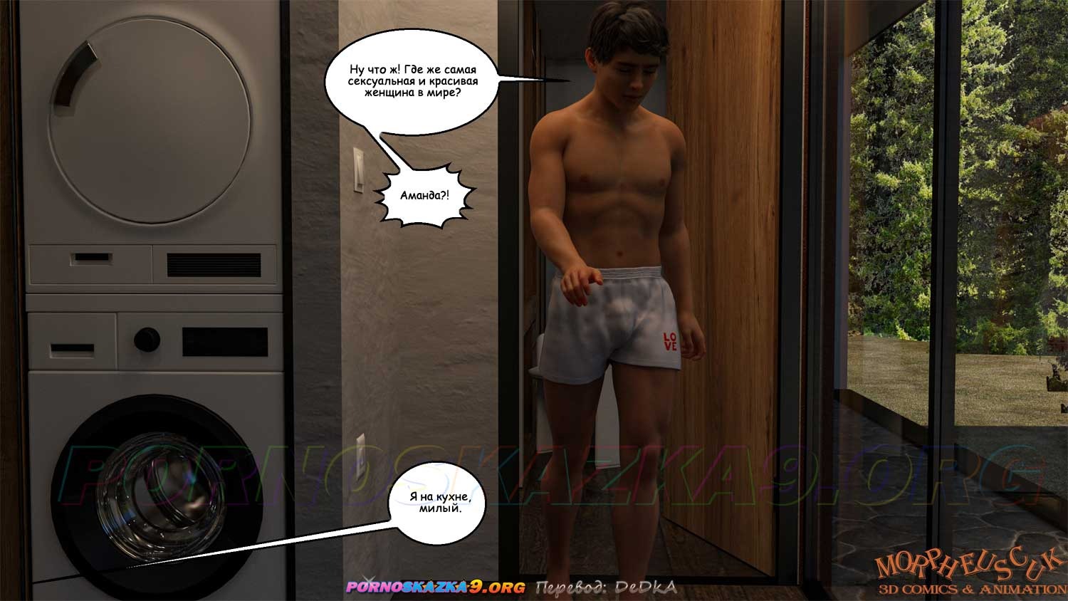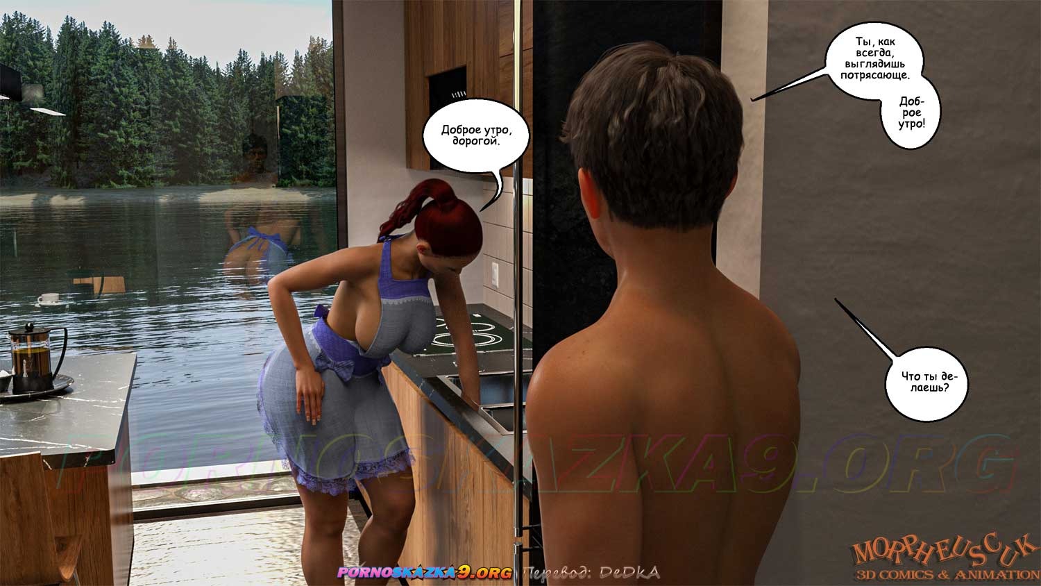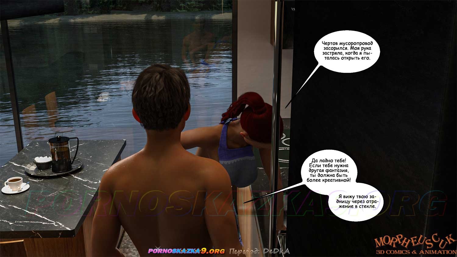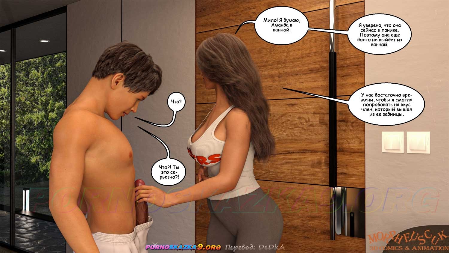 Секс комикс Соседи. Часть 5. Джастин улучил момент, когда он остался на кухне наедине с Амандой, и трахнул ее в задницу. Совершенно случайно, это увидела, приехавшая раньше времени, Кейт…