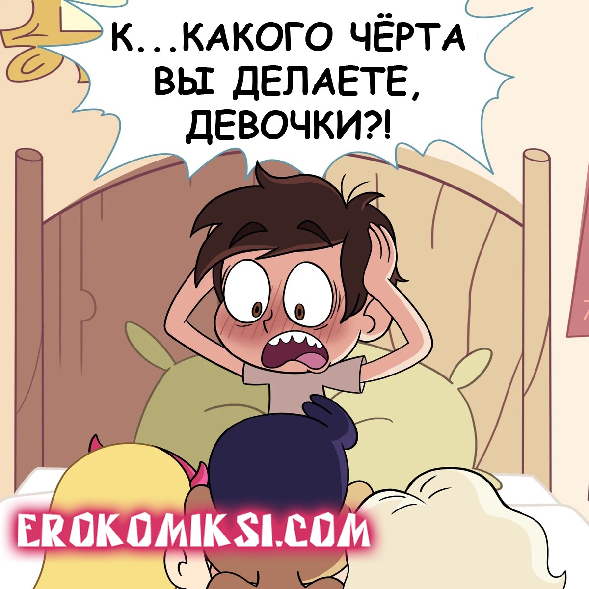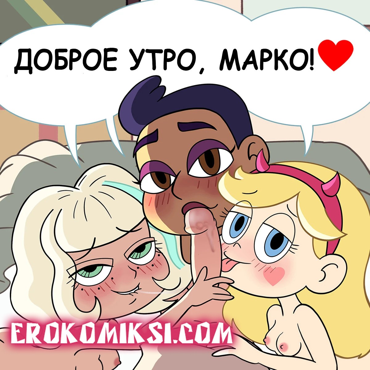 Секс комикс Стар против сил зла. Доброе утро, Марко. Марко был очень сильно удивлён когда проснулся, ведь у себя под одеялом он обнаружил трёх сексуальных девушек: Стар, Холли и Джеки. Они очень сильно хотели густого молочка на завтрак…