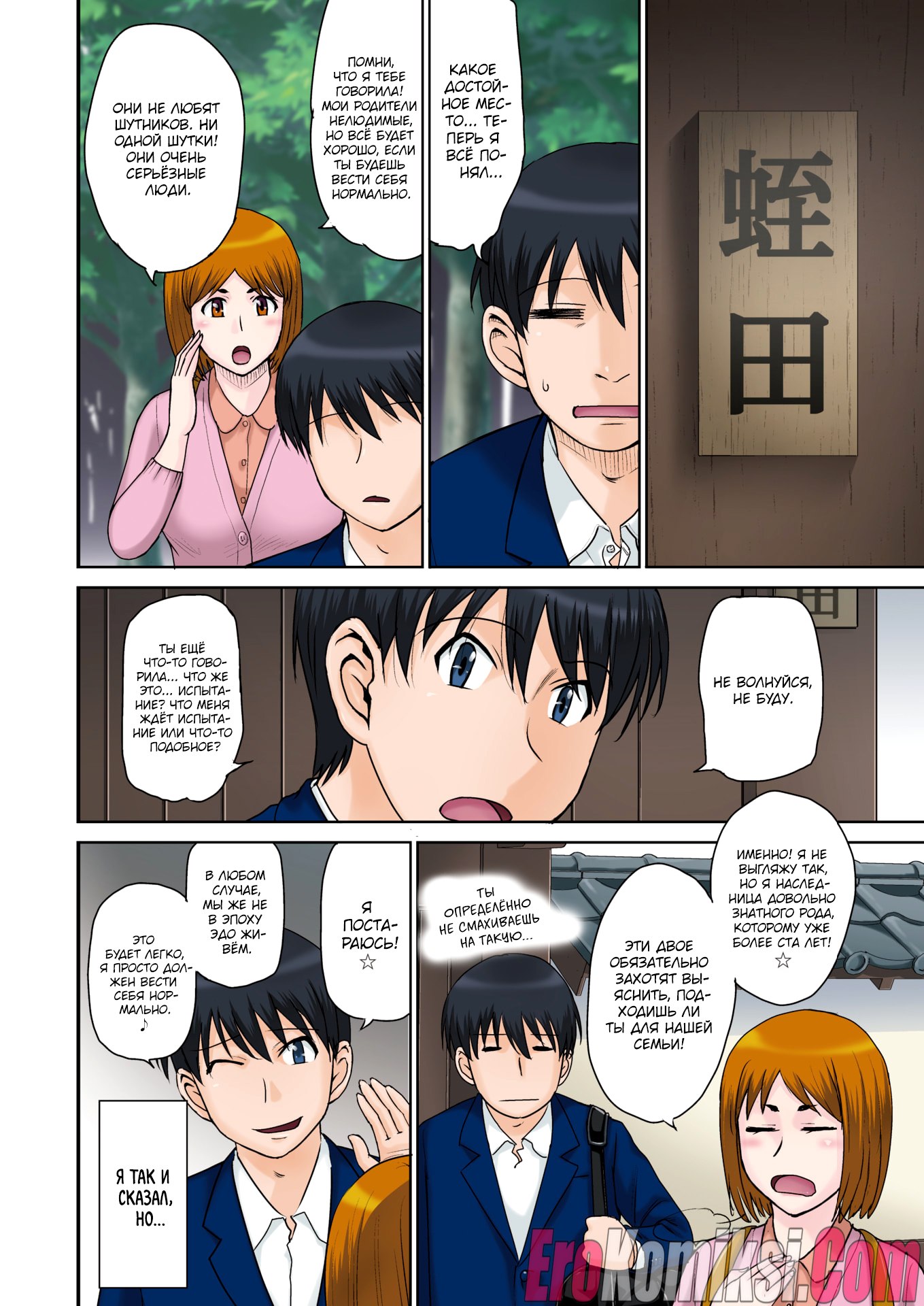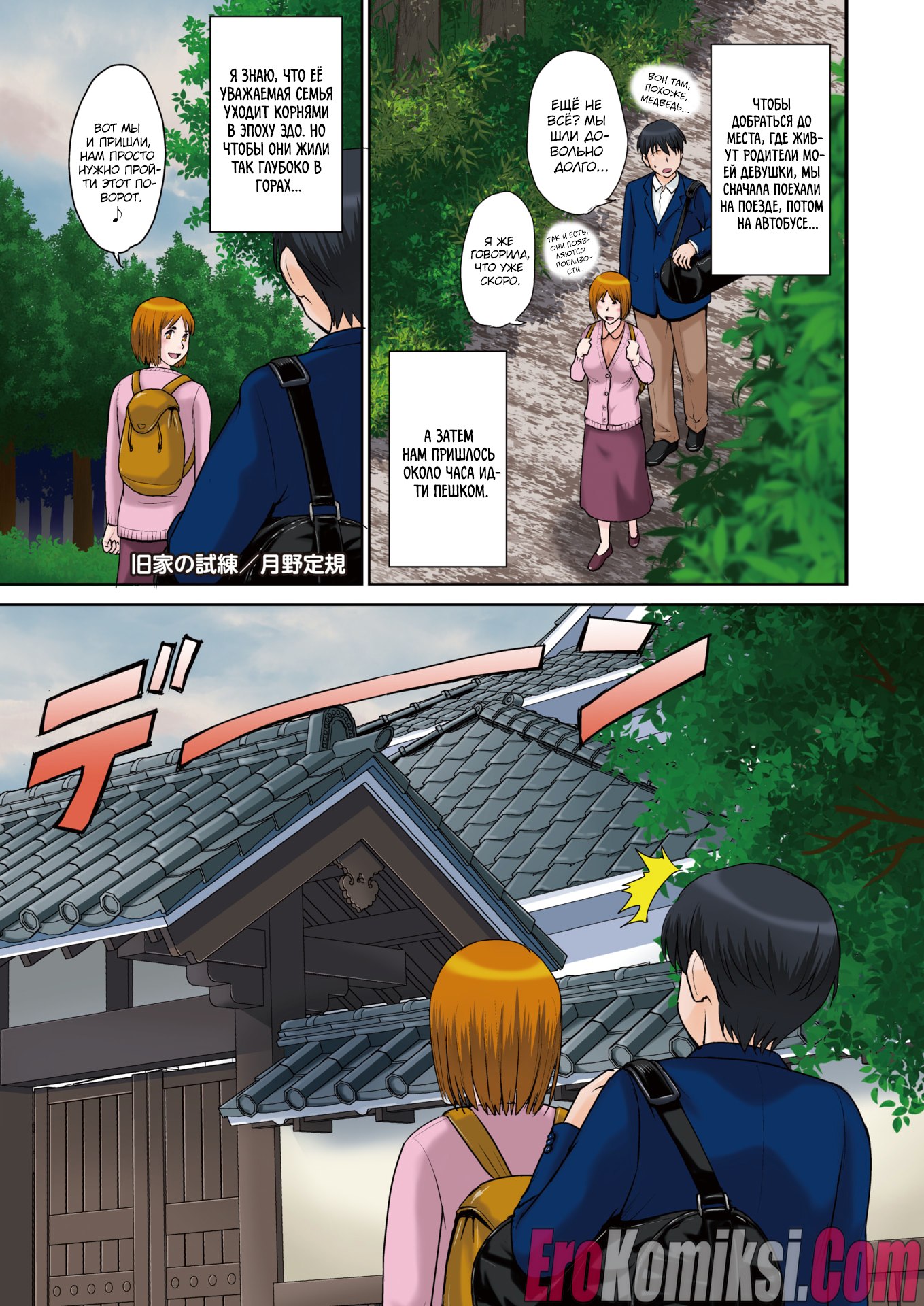 Секс комикс Старинное испытание семьи. Парень в настроении идет со своей девушкой знакомится с ее родителями. Они происходят из древнего рода, и в их семье принято испытывать парня, чем и решила заняться зрелая сексапильная милфа — мамаша девушки…