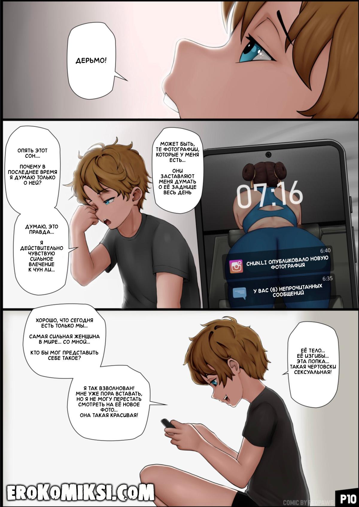 Секс комикс Street Fighter. Тренировка с Чун Ли. Эпизод 1. Майк всегда был без ума от Чун Ли и её огромной задницы, поэтому, когда Рю отказывается с ним заниматься, Майк идёт к Чун Ли и после долгих уговоров у него получается её уломать и позаниматься с ним позаниматься. Ночью, Майку снится сон, в котором Чун Ли сама начинает с ним заигрывать и позволяет ему трахнуть её в задницу…