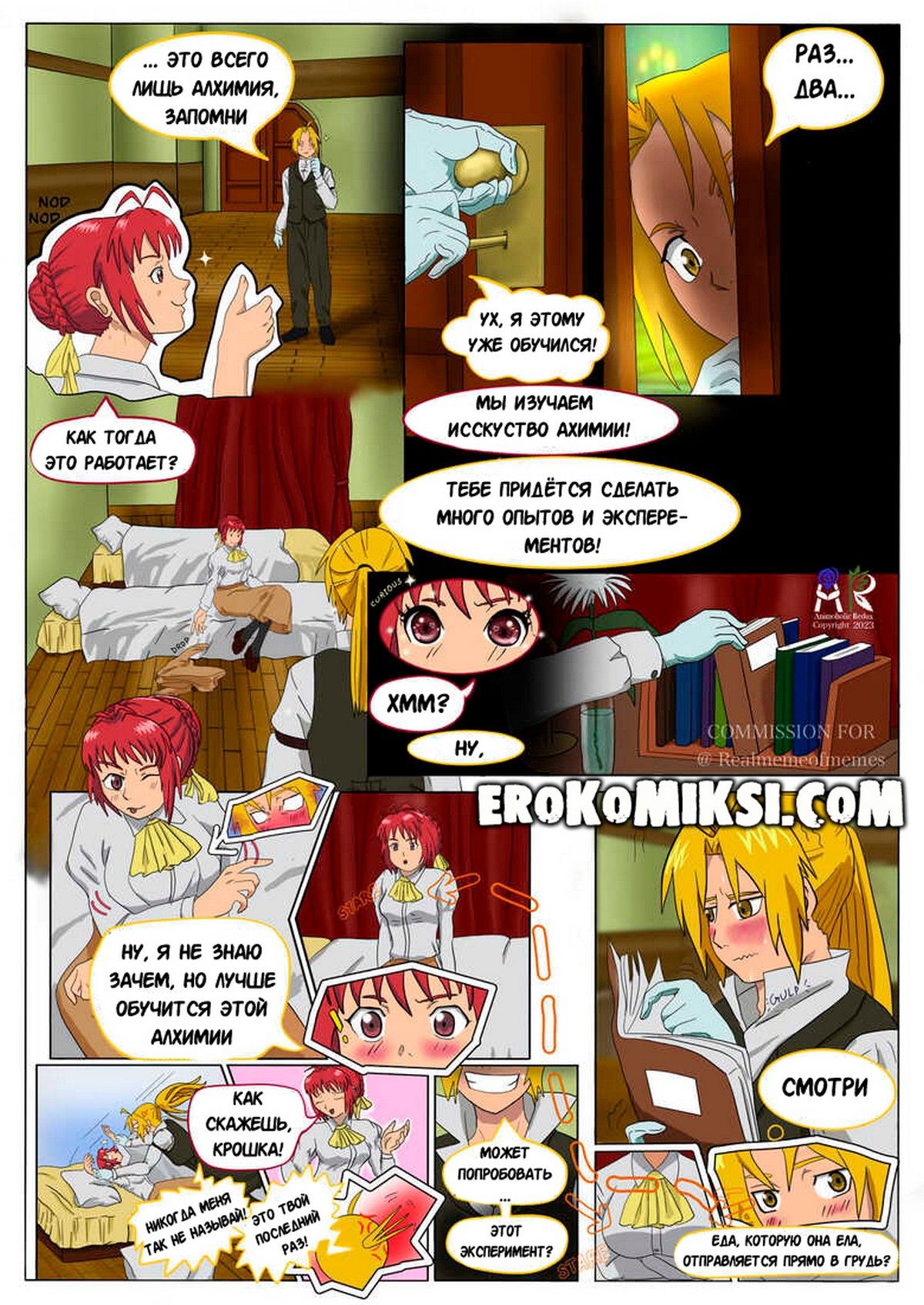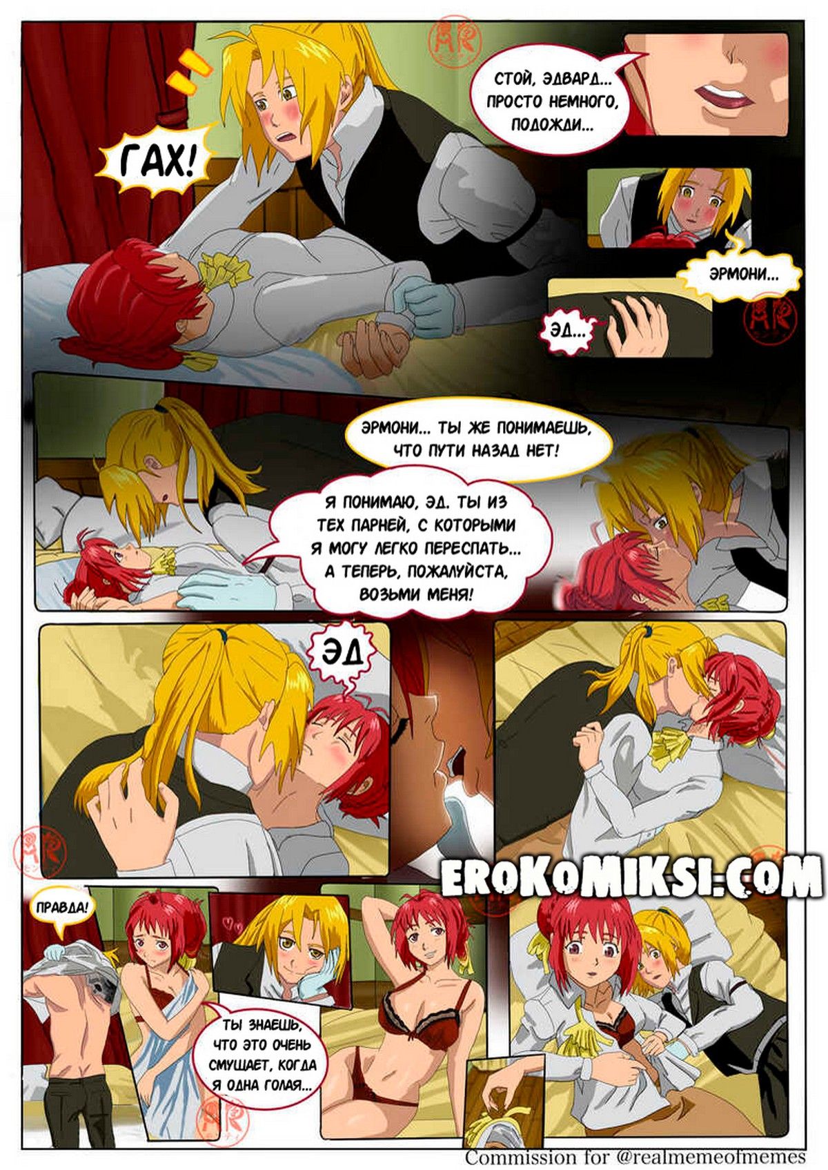 Секс комикс Трансмутация сердец. Эдварпд соблазнил горячую красотку, под предлогом, эксперименты с алхимией. но видимо Эрмони сама была не против, большого члена, который полностью разорвал её тугую, сочную киску…