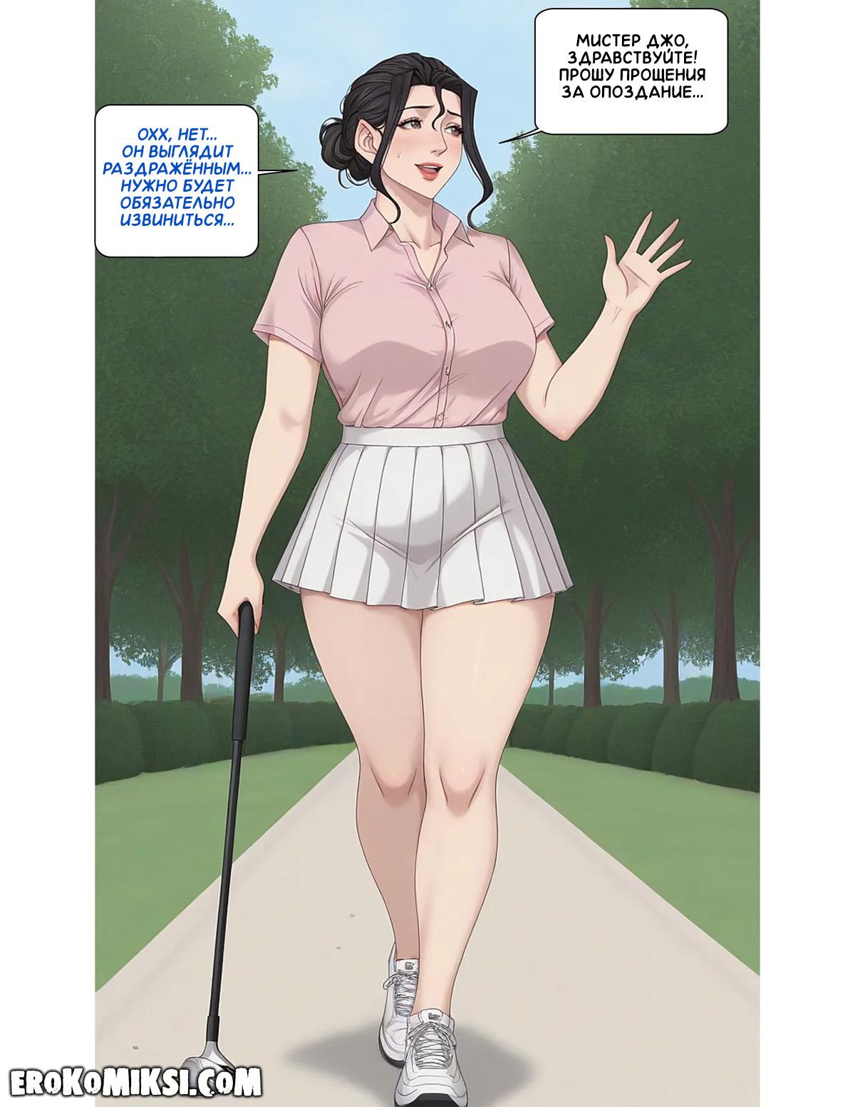 Секс комикс Тренировка по гольфу. Часть 1. Энн покупает специальную униформу для гольфа, которая кажется ей слишком откровенной, и она считает, что все будут на неё пялиться, но её тренер убеждает её, что Энн выглядит в этой униформе просто потрясающе…
