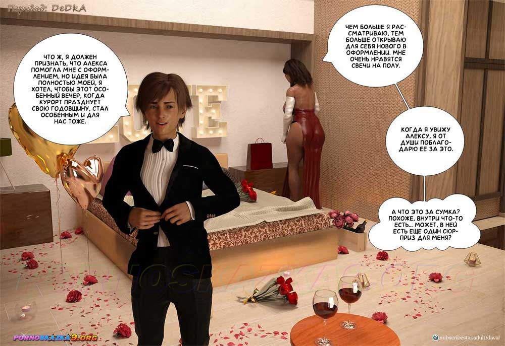 Секс комикс Удовлетворение потребности. Часть 11. Пока Аманда и Лиам трахаются, как кролики, в пустом коридоре отеля недалеко от туалета, где их едва не поймала Эмма, Алекса в укромном месте соблазняет Карлоса, чтобы выудить у него информацию о Маркусе…