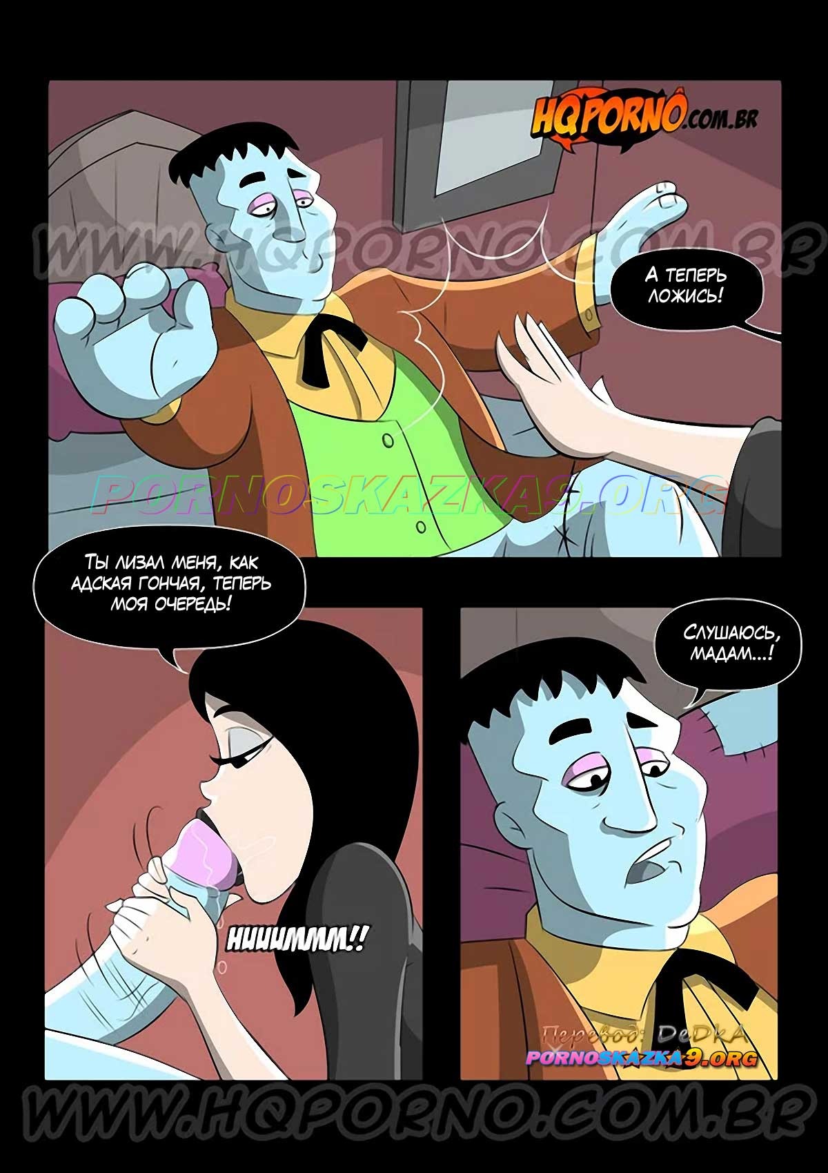 Секс комикс Уэнздей. Часть 2. Рога Гомеса. Похотливая женушка Гомеса, Мортиша, очень хочет воспользоваться тем, что он уедет и с благодаря сексуальной помощи погонщика наставить рога своему муженьку, но Гомеса тоже не прост, он чует подвох и хочет проверить свои подозрения воочию…