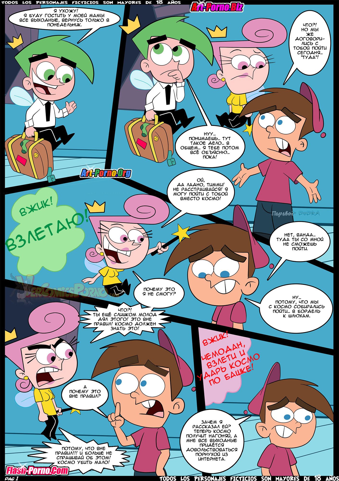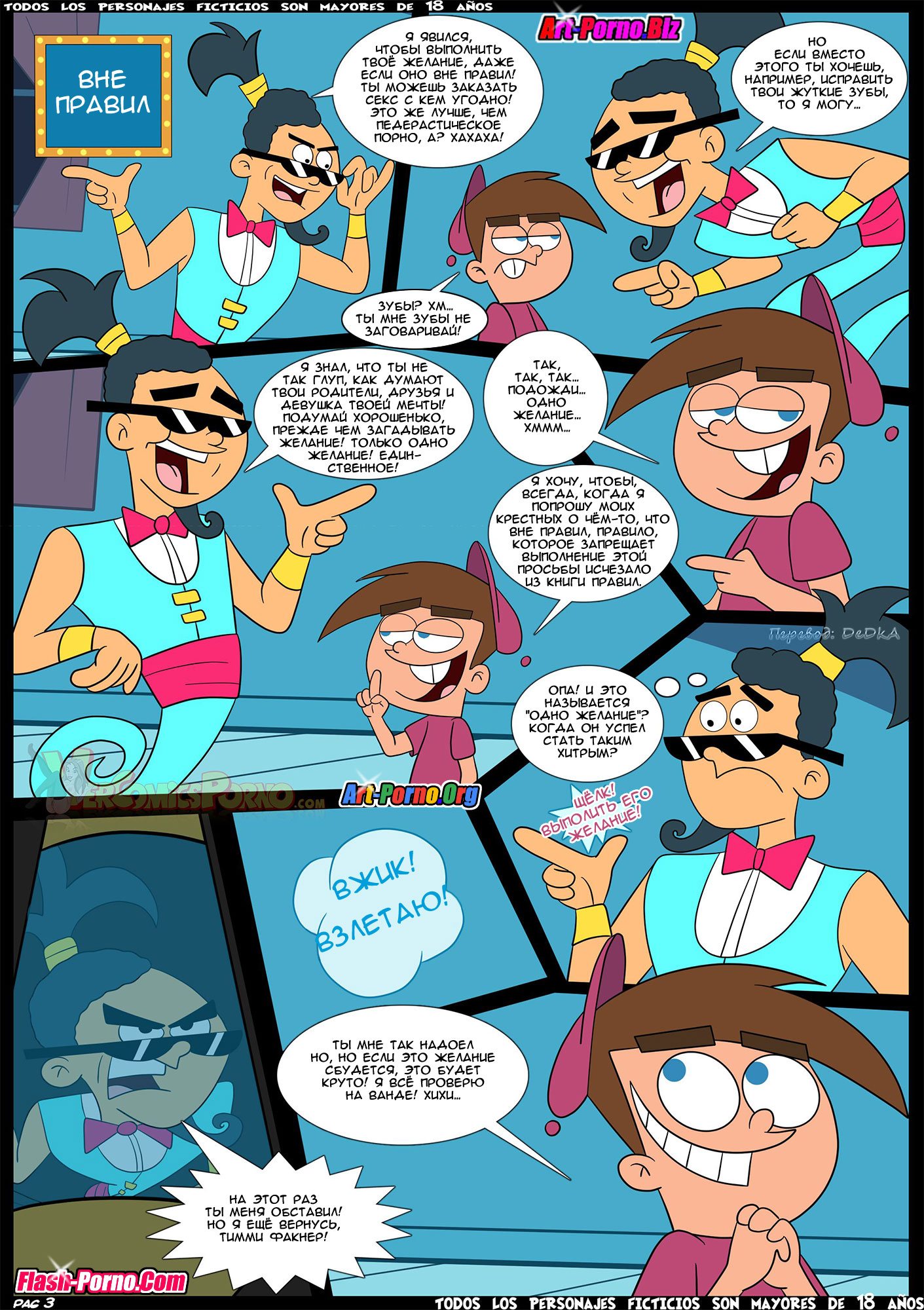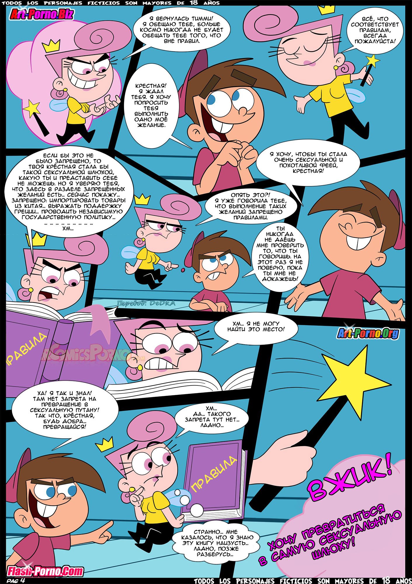 Секс комикс Волшебные родители. Вне правил. Часть 1. The Fairly OddParents. Breaking The Rules. Croc. Горячие милфы без ума от большого члена озабоченного Тимми. Красотки раздеваются перед парнем и хорошенько ему отсасывают, после чего дают ему выебать свою пизденку…