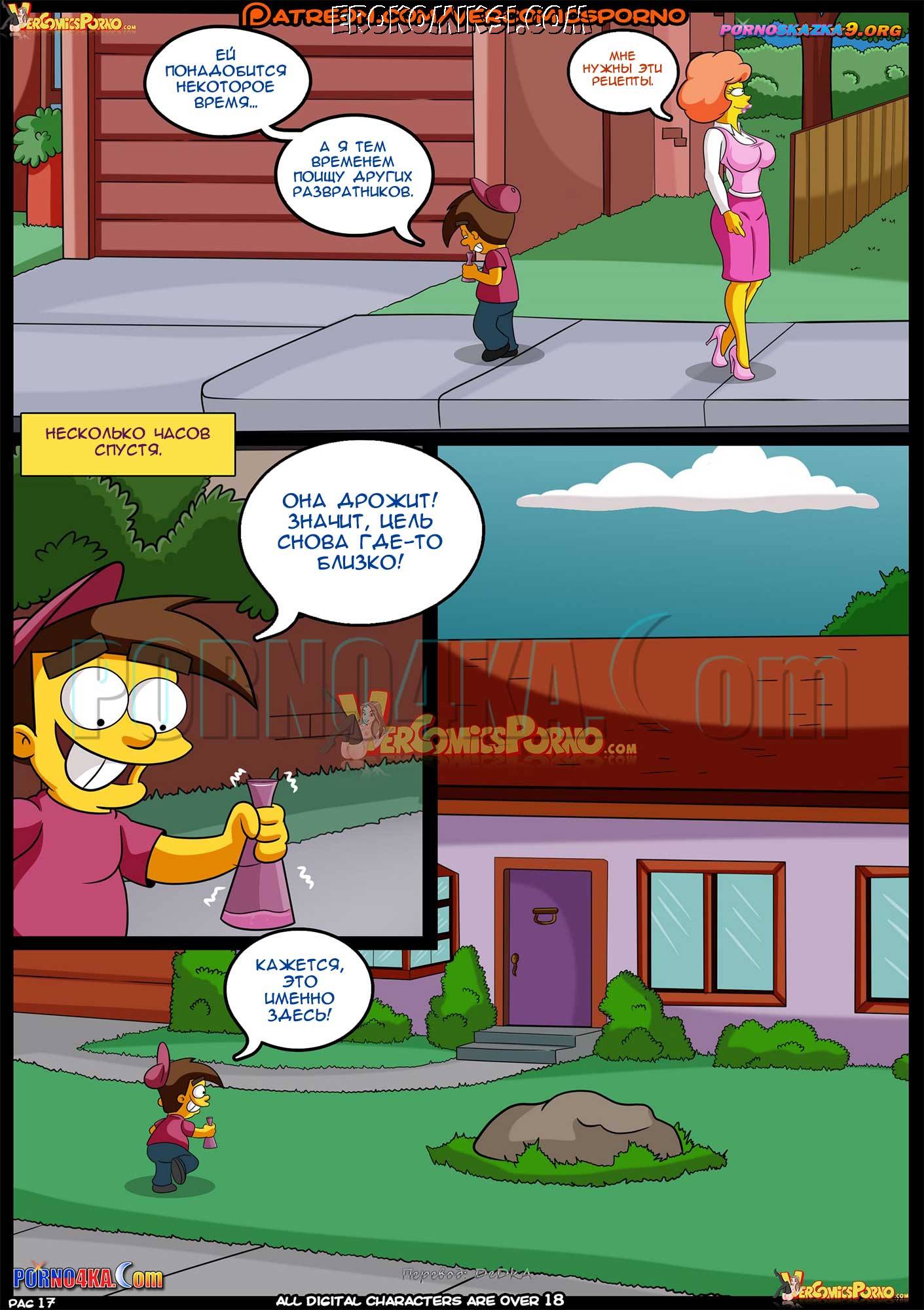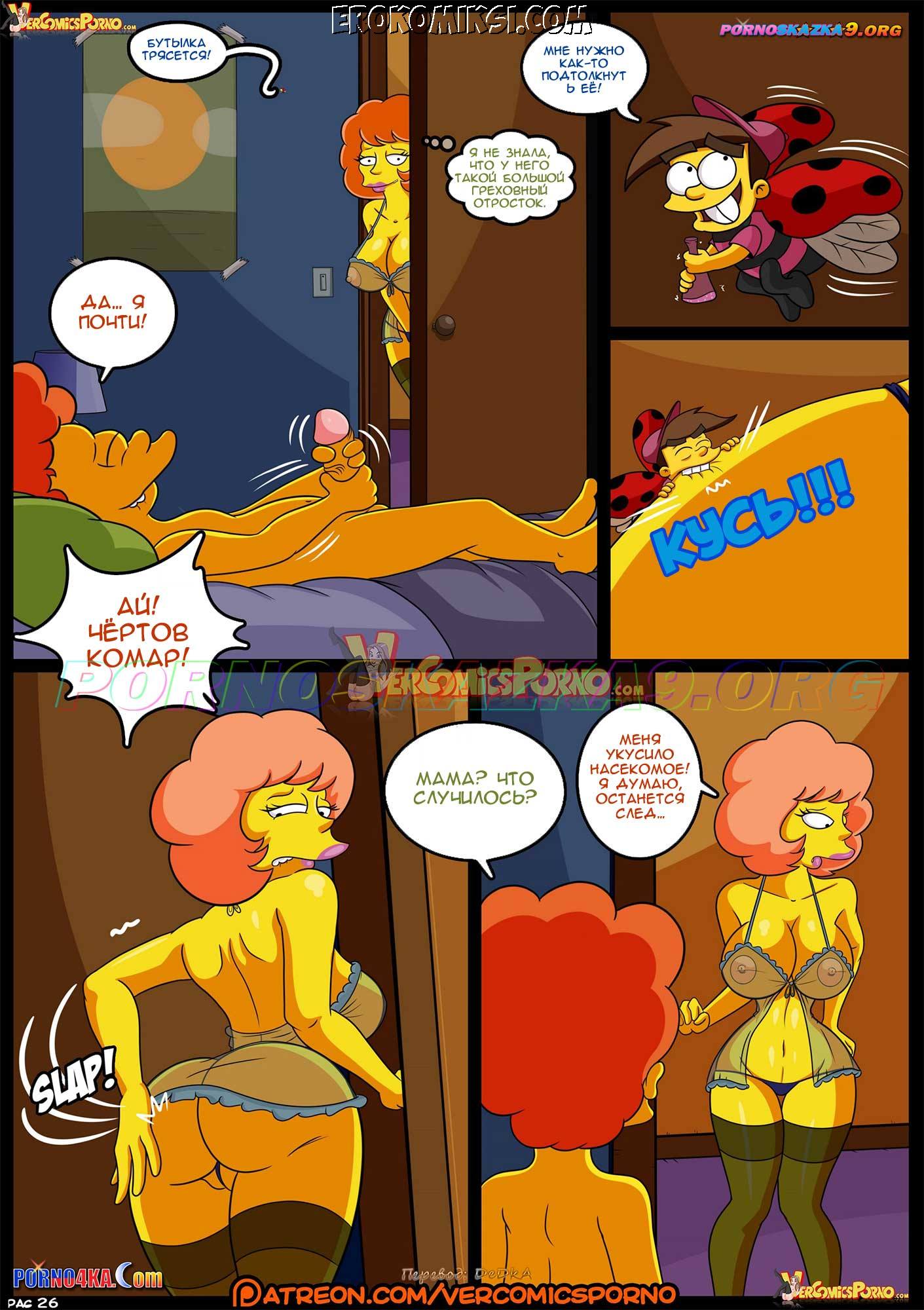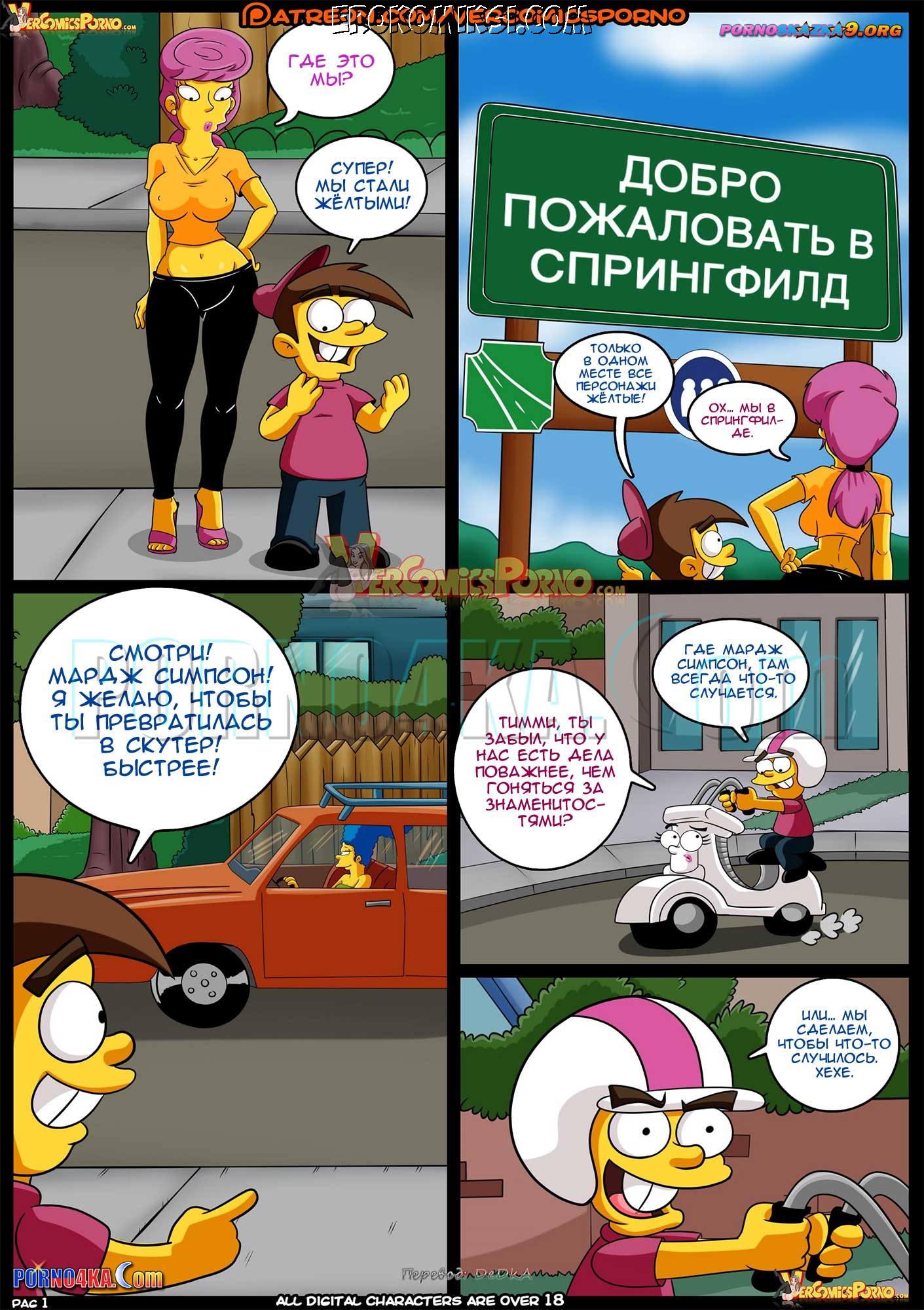 Секс комикс Волшебные родители. Вне правил: Ловцы порочных милф. Часть 2. Тимми и Ванда в поисках эликсира для Амур обшарили половину вселенной, пока не нашли иллюзорные миры, в которых обитают знаменитые персонажи популярных мультфильмов и ещё более популярных порно пародий на эти мультики. И первый мульт-город, в который они попали был всем известный Спрингфилд. А где Спрингфилд, там и, конечно же, Симпсоны. А где Симпсоны, там полный разврат, который может смениться только ещё большим развратом с нереально жестким сексом!