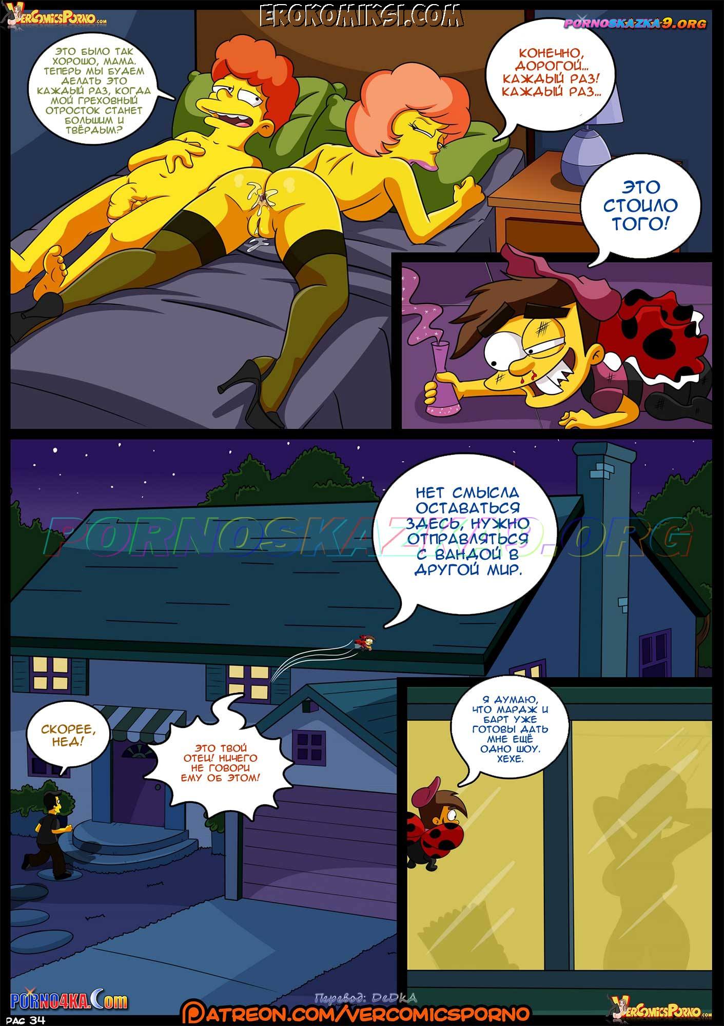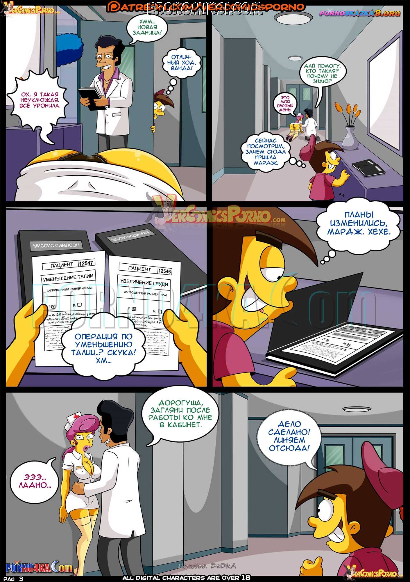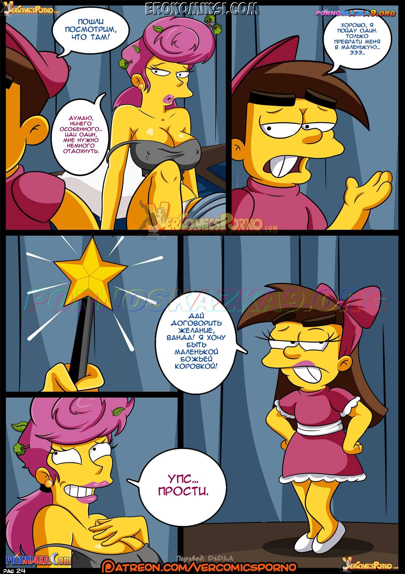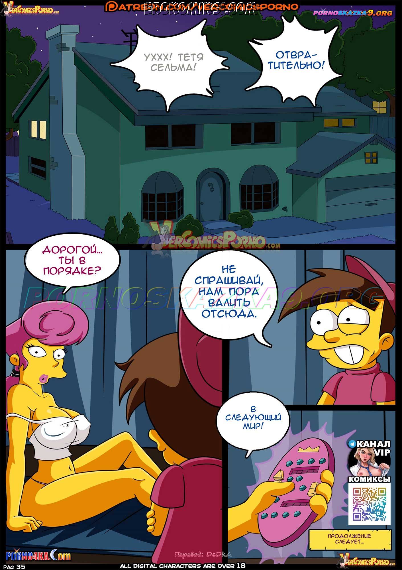 Секс комикс Волшебные родители. Вне правил: Ловцы порочных милф. Часть 2. Тимми и Ванда в поисках эликсира для Амур обшарили половину вселенной, пока не нашли иллюзорные миры, в которых обитают знаменитые персонажи популярных мультфильмов и ещё более популярных порно пародий на эти мультики. И первый мульт-город, в который они попали был всем известный Спрингфилд. А где Спрингфилд, там и, конечно же, Симпсоны. А где Симпсоны, там полный разврат, который может смениться только ещё большим развратом с нереально жестким сексом!