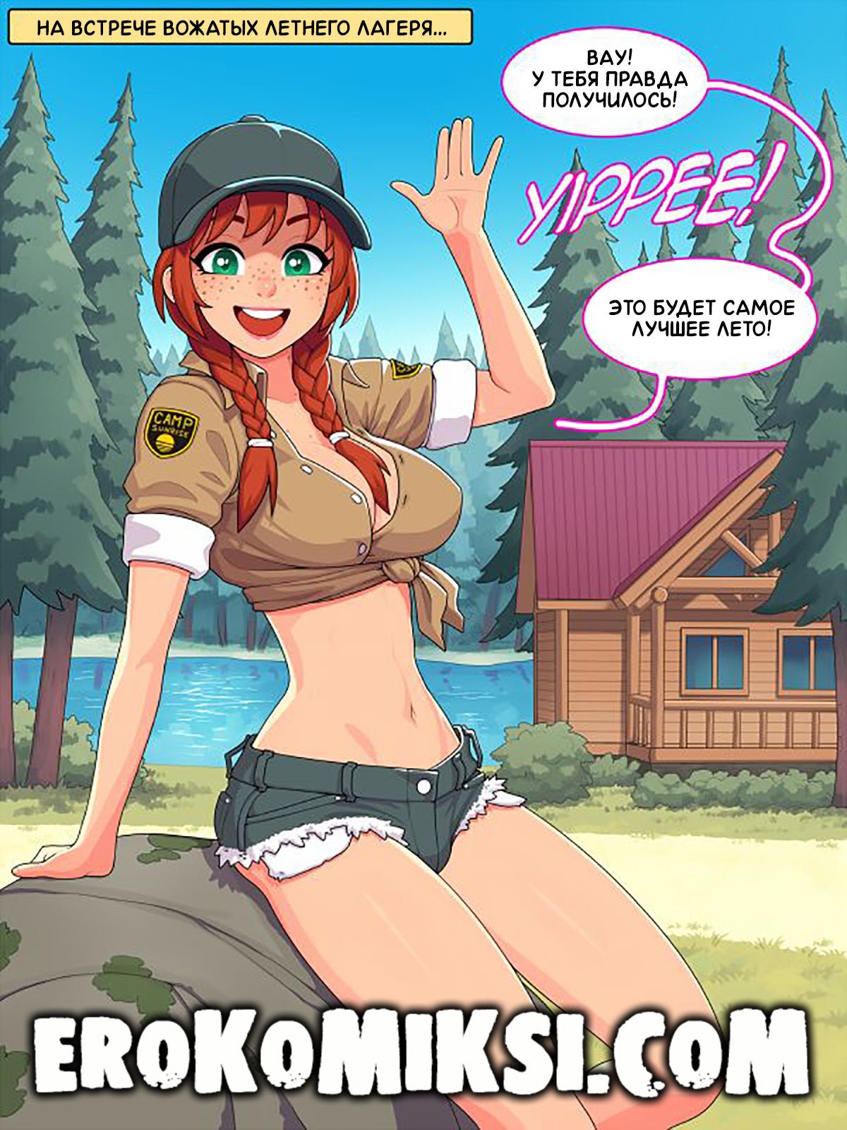 Секс комикс Встреча вожатых лагеря. Вожатые готовят лагерь к сезону. Пока их только двое и они решают немного отдохнуть и поразвлечься раз уж есть свободное время. Сексуальная вожатая снимает с себя одежду и демонстрирует своему коллеге своё аппетитное тело. Ну разве можно устоять перед такой красоткой???