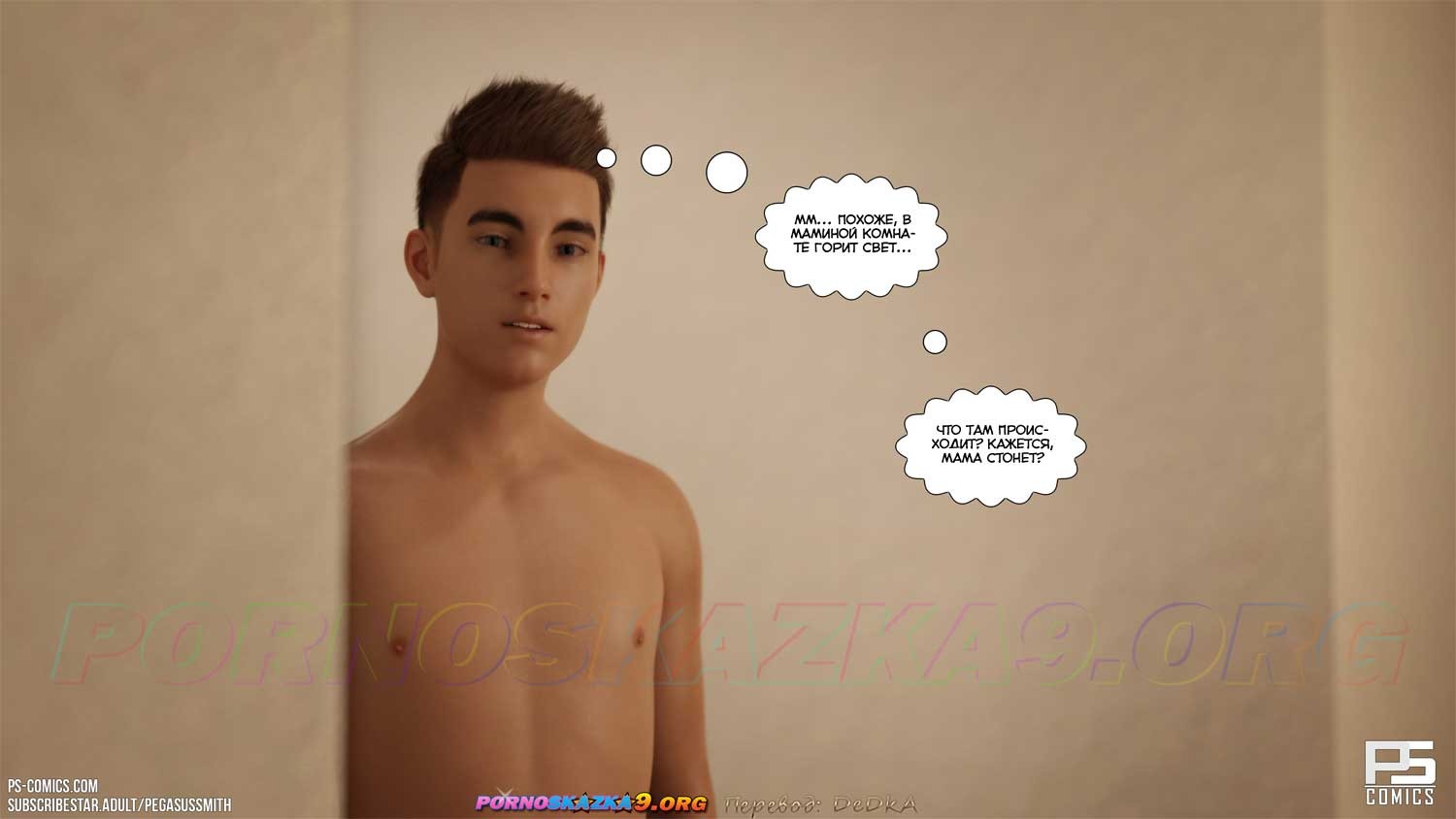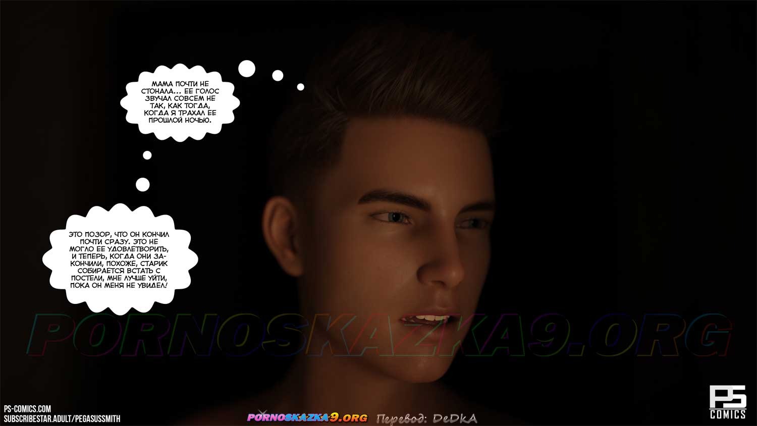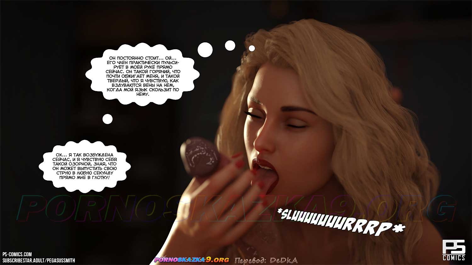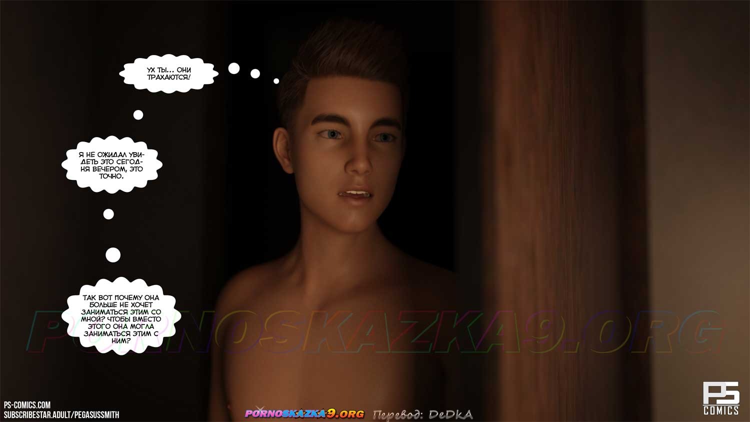 Секс комикс Заблудившиеся в лесу в 3D. Часть 4. Утром Лорен ужаснулась тому, что прошлой ночью ее супруг спал рядом с ней в то время, когда Джонни трахал ее. Это вынудило ее принять решение вообще прекратить секс с Джонни. Решение она приняла, но на самом деле она хочет так все это прекратить, чтобы осталась возможность продолжать… Железная женская логика!
