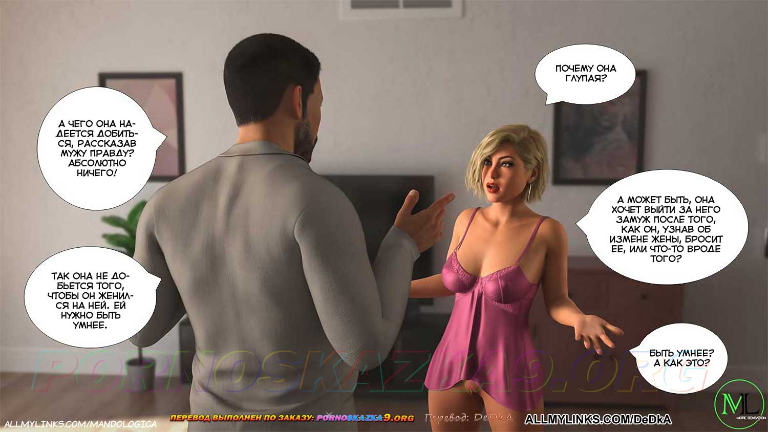 Секс комикс Запретное пламя. Часть 7. План Джесси, в результате которого Альфред должен был узнать об измене жены и подать на развод, претерпел некоторые изменения, так как Альфред, сам того не подозревая, подсказал Джесси такой вариант развития событий, при котором развод состоится, но инициатором развода будет не муж, а жена…