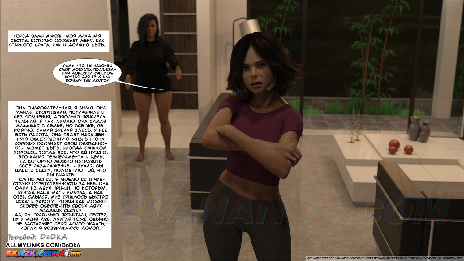 Секс комикс Запретный плод. Часть 1. Герой комикса и две его младшие сестры, после того, как их мать умерла, а отец слинял, остались без родителей. Парню сразу после школы пришлось устроиться на тяжелую работу, чтобы содержать дом и сестер…