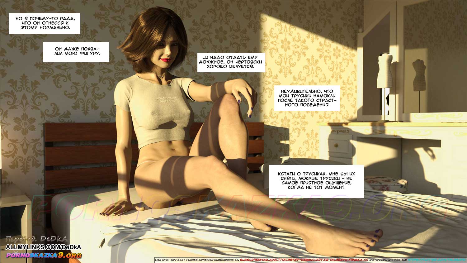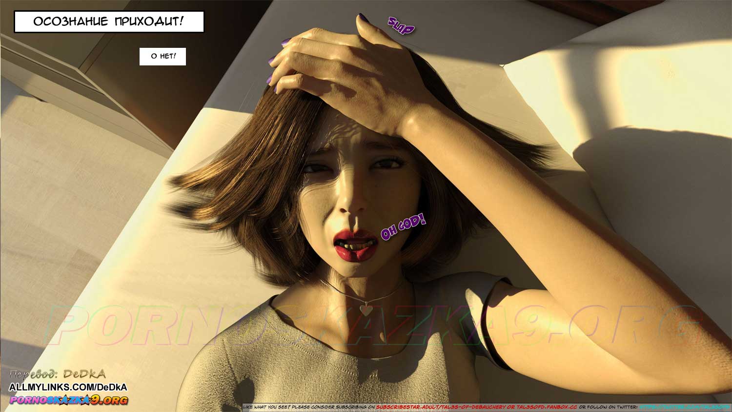 Секс комикс Запретный плод. Часть 8. Утром, после того, как Джейн вернулась с вечеринки пьяная, она проснулась с головной болью, которую едва ли не усилили воспомиинания о том, что она по возвращении домой делала с Седриком. Успокаивало лишь то, что он отнесся к этому спокойно и естественно…