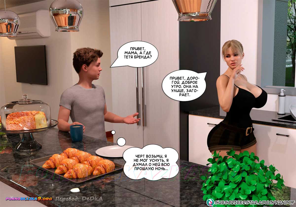 Секс комикс Запретный соблазн. Часть 6. Утром, загорая у бассейна, Бренда размышляла о том, что произошло между нею и Уильямом, и думала, как ей теперь вести себя после этого. А тем временем Уильям, пользуясь тем, что в доме он остался наедине с мамой, был настроен не упустить такой удобный момент…