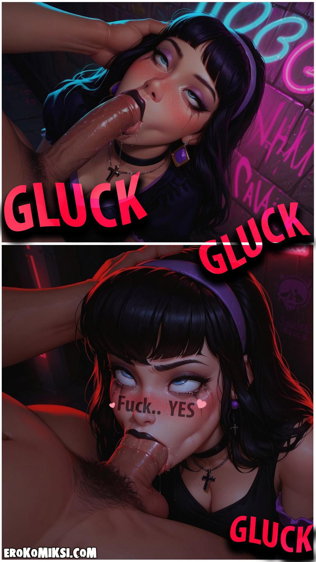 Секс комикс Желания Дафны. Дафна встретила в баре паренька, у которого когда-то давно была нянечкой, и который был в неё влюблён. Немного выпив и разговорившись, Дафна захотела увидеть член паренька и они отправились в ближайшую подворотню, где Дафна как следует отсосала огромный член парнишки, а затем дала ему оттрахать свою задницу…