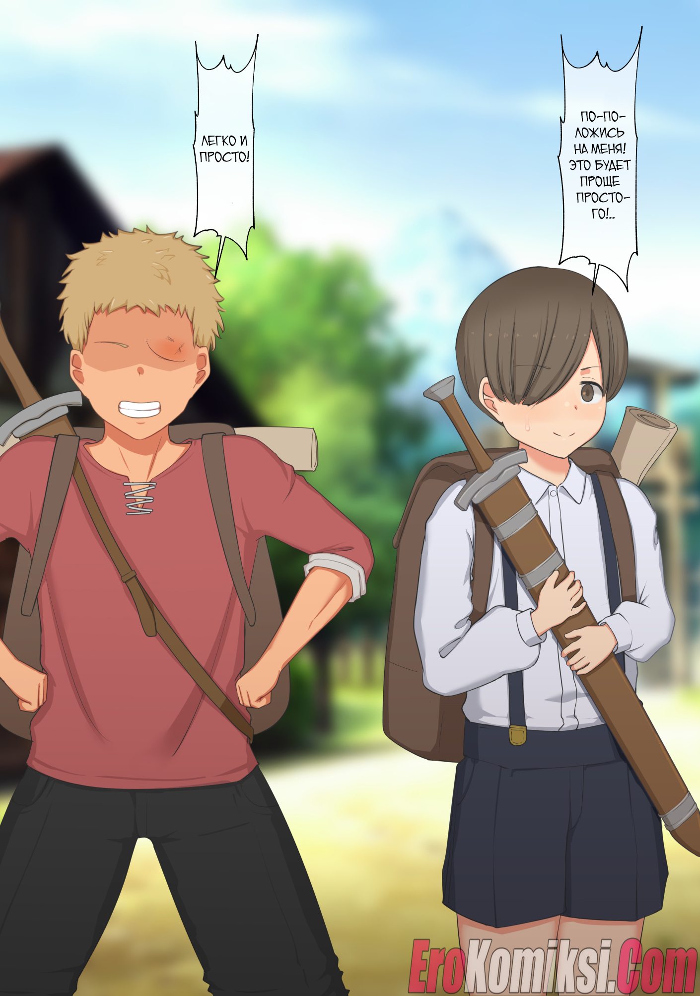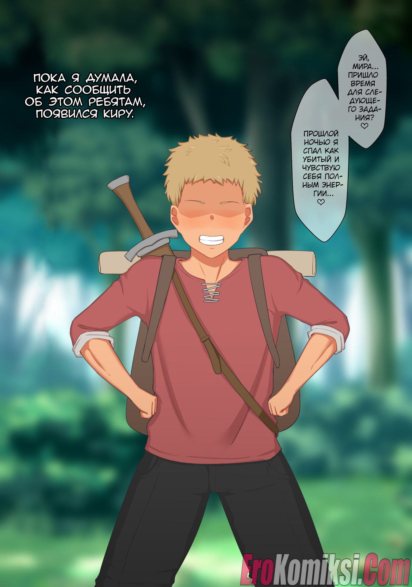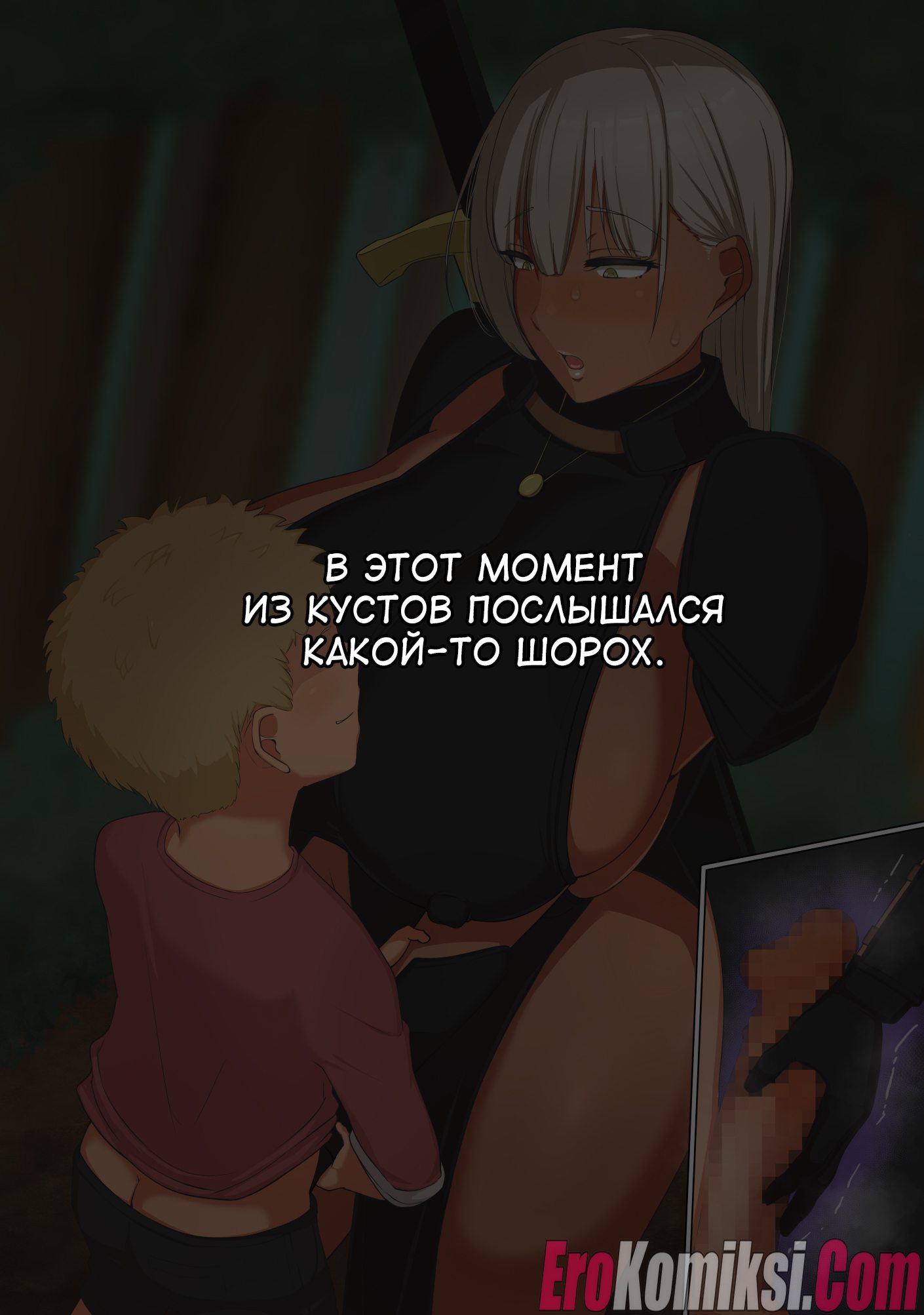 Секс комикс Женщина-мечник и два юноши.