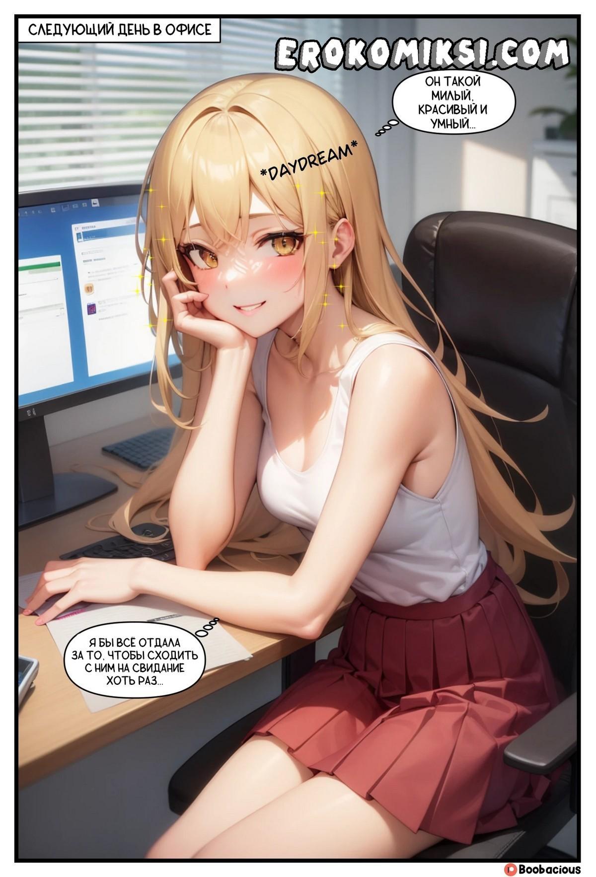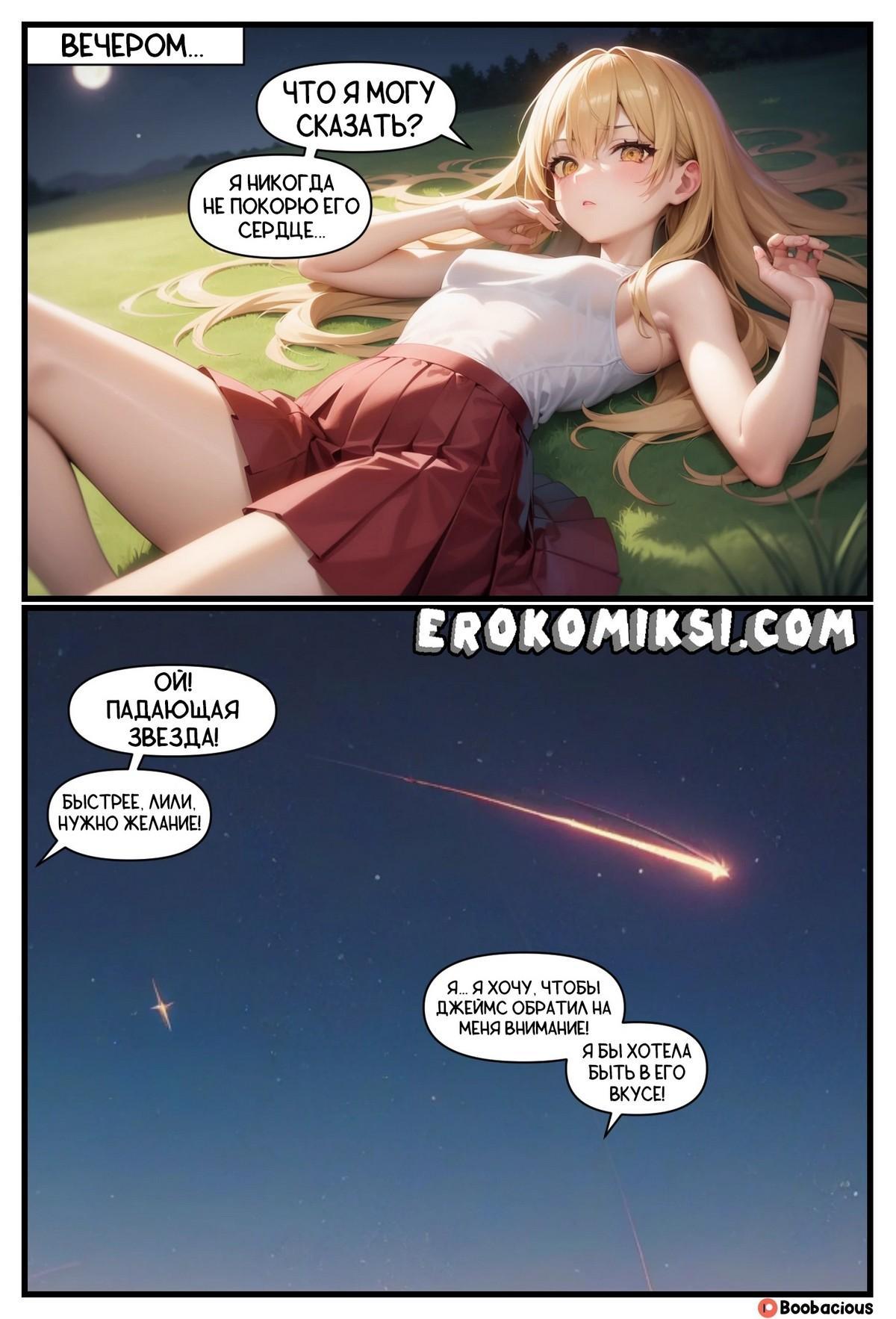 Секс комикс Звёздный перелом. Молодая сучка очень хотела привлечь внимание своего босса, но ей никак этого не удавалась. В очередной раз после работы она лежала и смотрела на звёзды, пока не увидела падающую звезду, которая изменила её жизнь…