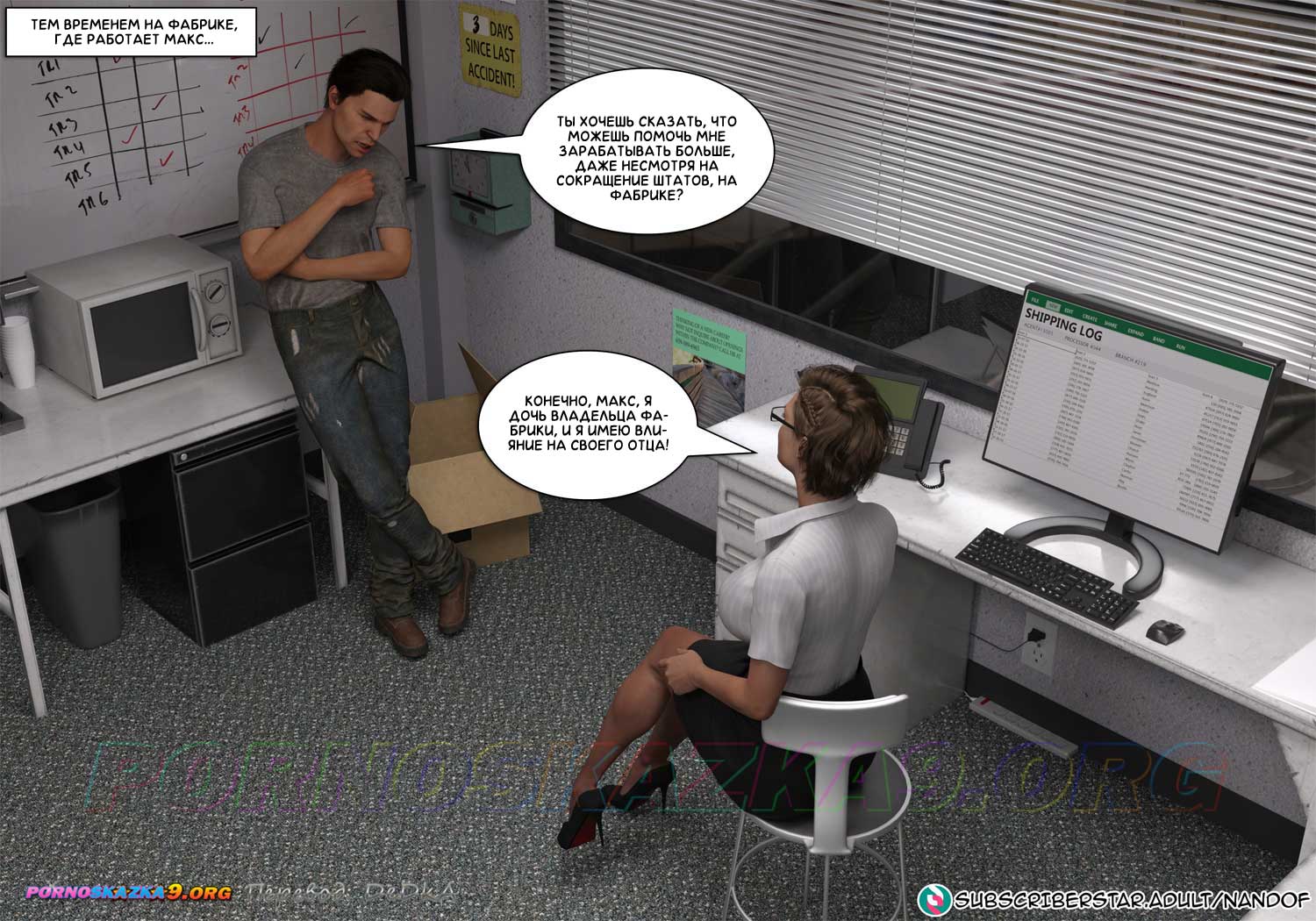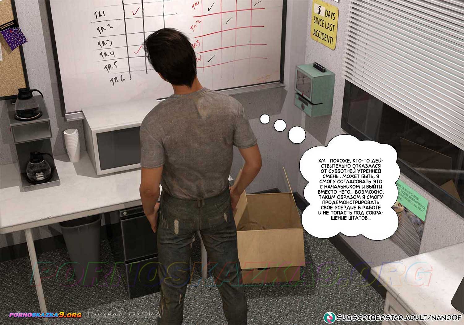 Секс комиксы Онлифанс мамы. Часть 1. На фабрике, где работает Макс, дела идут плохо, ему грозит увольнение. Жена Макса подумывает о том, чтобы поискать работу на неполный рабочий день, а еще она думает, что их с Максом сын, Джейк, который готовится к поступлению в колледж, тоже мог бы начать работать, но у Джейка совсем другое на уме…
